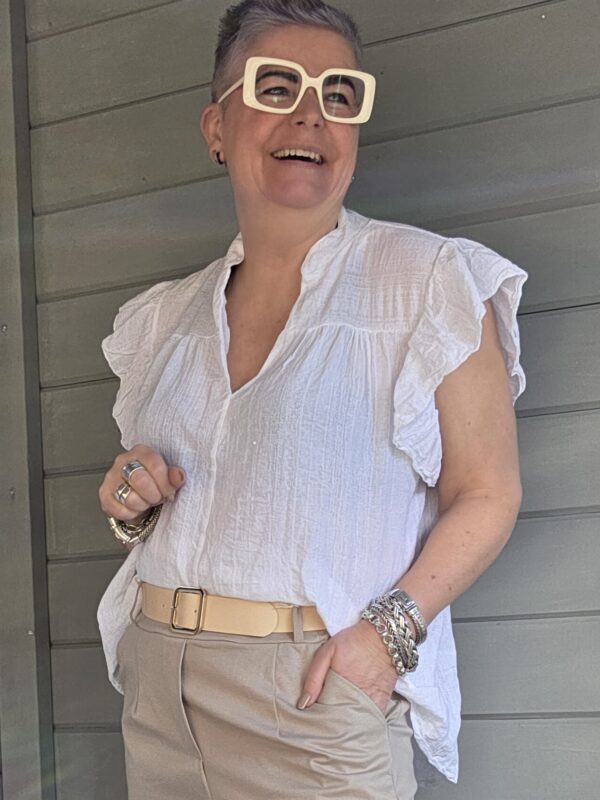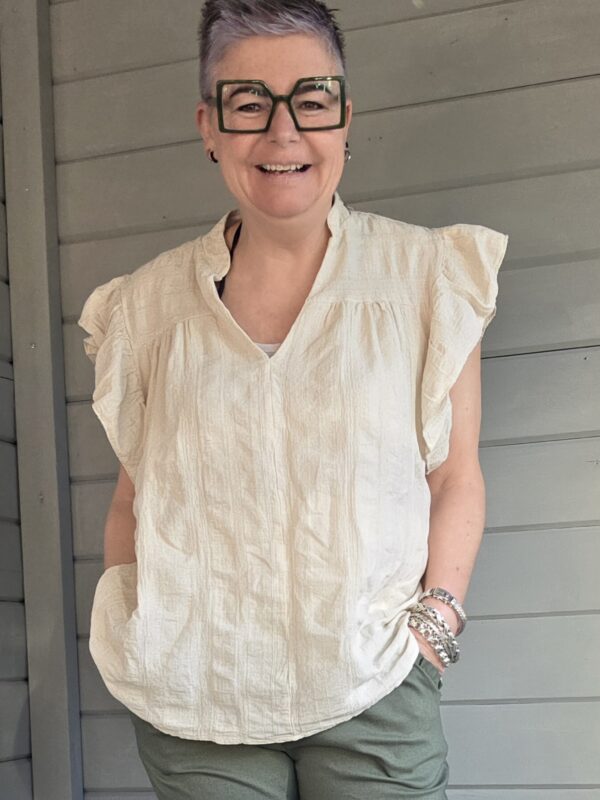 Gaja top/roezel mouw/beige