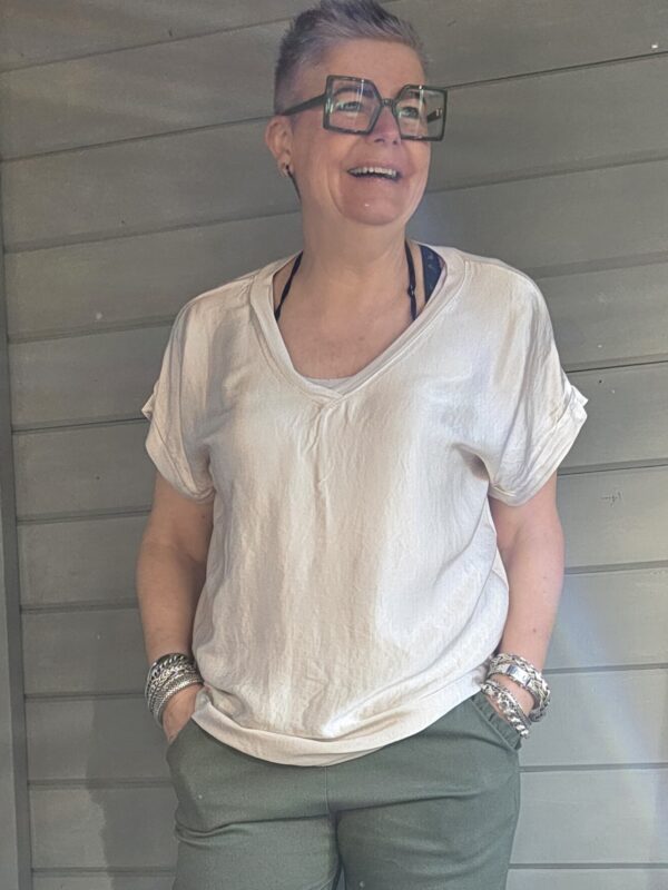 Ganes shirt/V-hals/satijn/beige