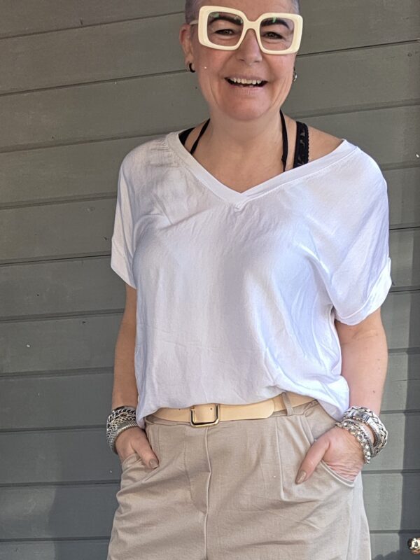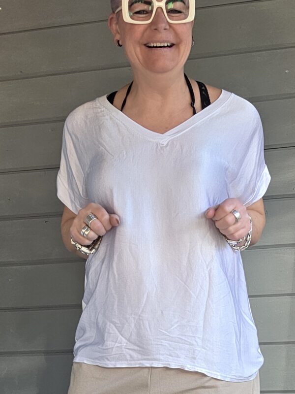 Ganes shirt/V-hals/satijn/wit