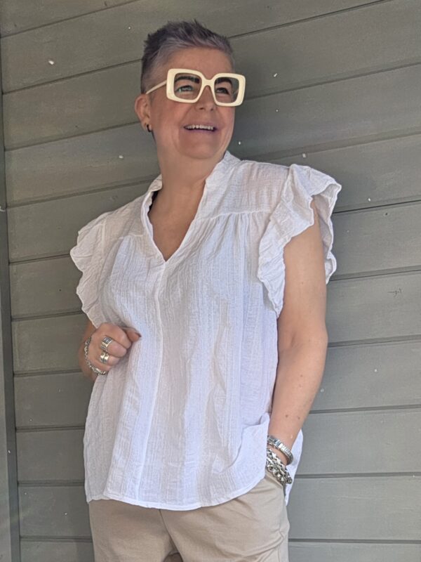 Gaja top/roezel mouw/wit