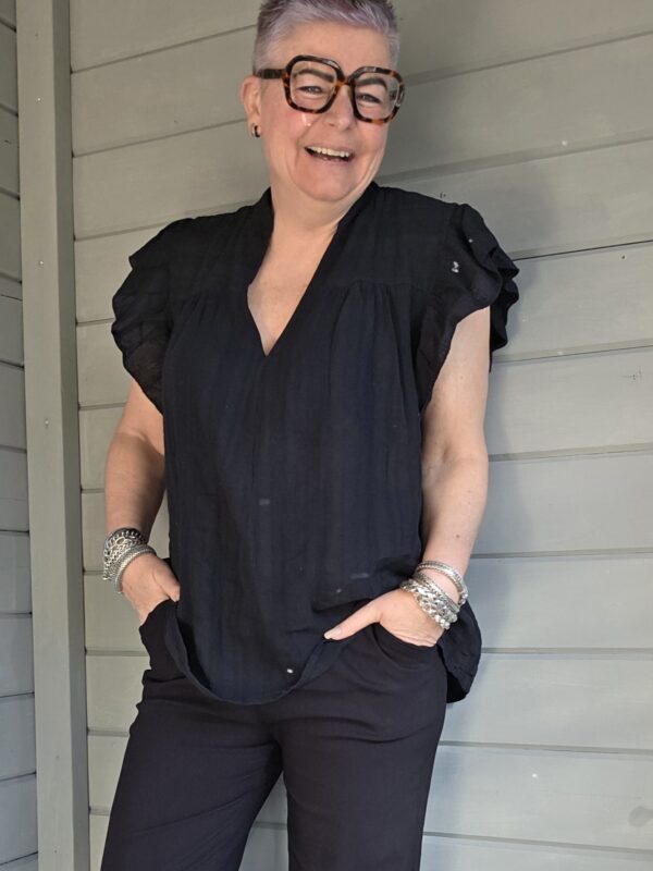 Gaja top/roezel mouw/ zwart