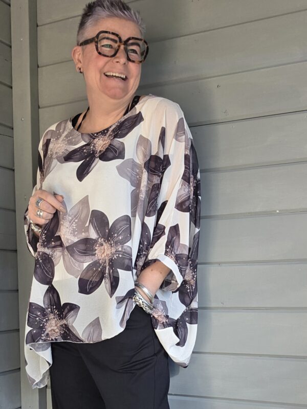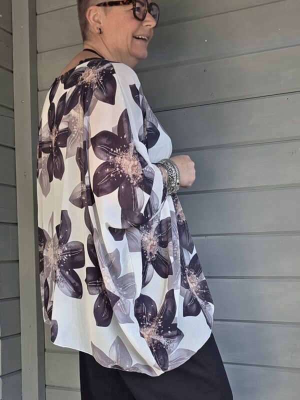 Genoa shirt/print bloem/curvy/zwart