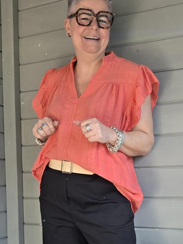 Gaja top/ roezel mouw/koraal