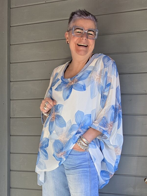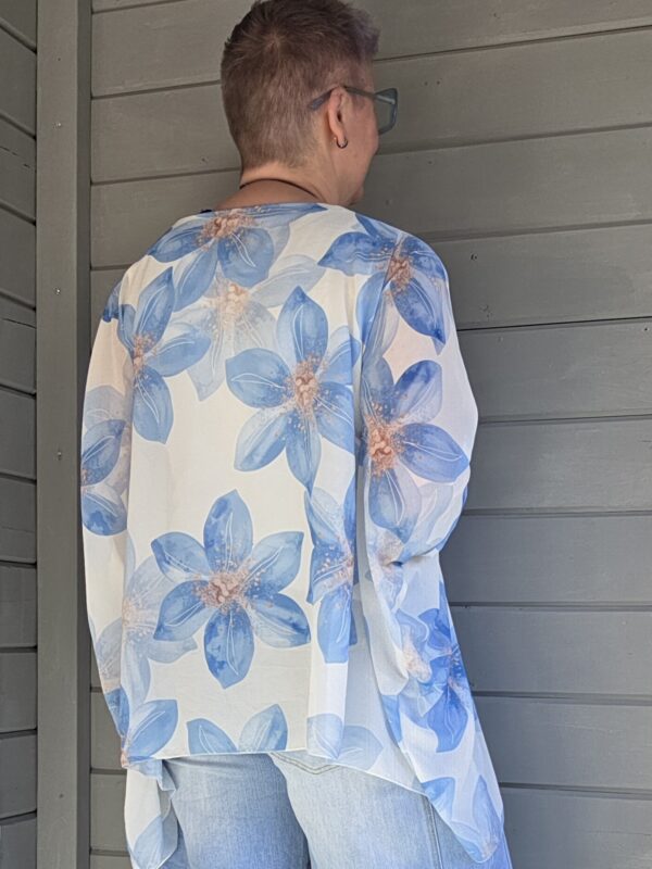 Genoa shirt/print bloem/curvy/blauw