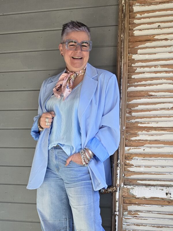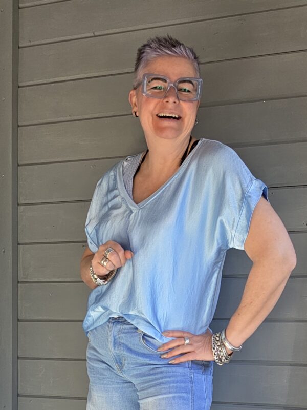 Ganes shirt/V-hals/satijn/blauw