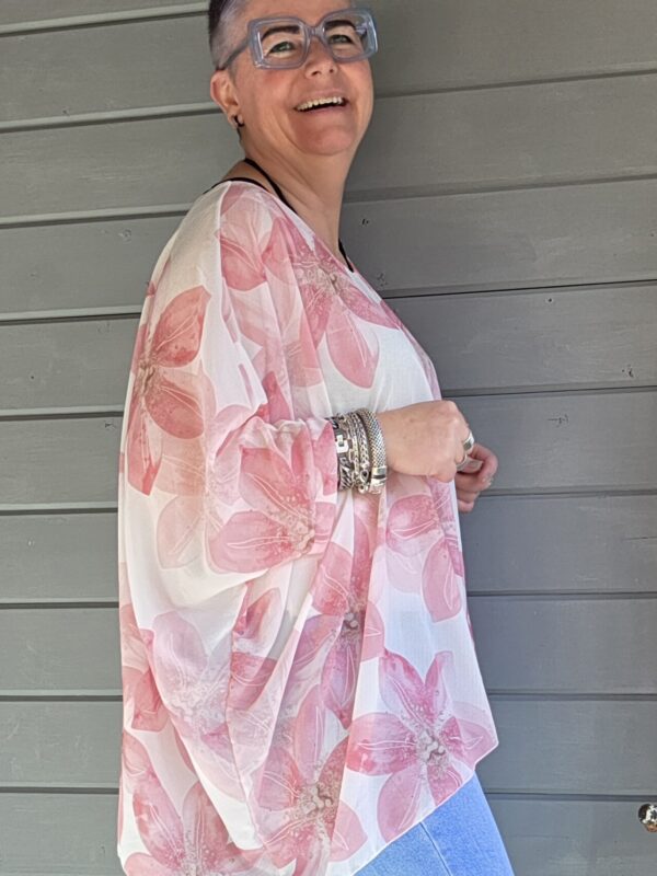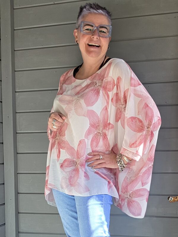 Genoa shirt/print bloem/curvy/roze