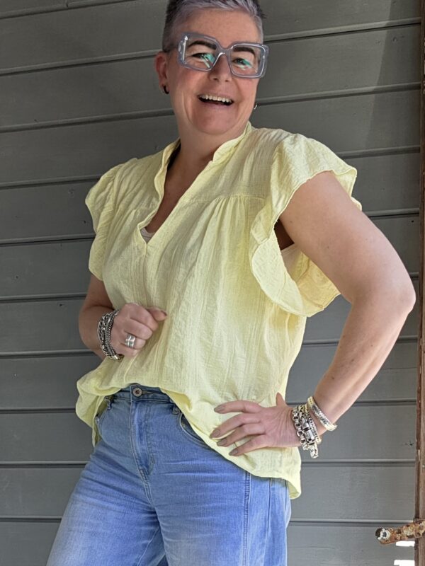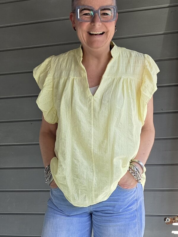 Gaja top/roezel mouw/geel