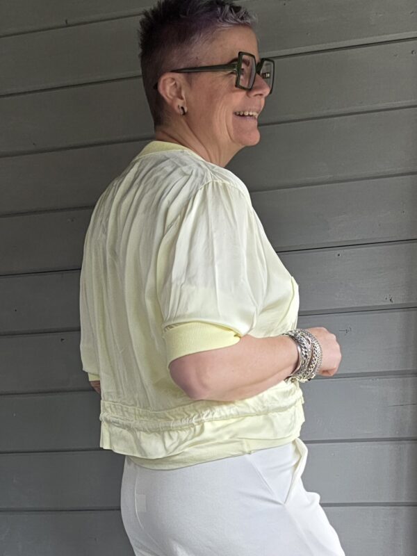 Ganes shirt/V-hals/satijn/geel