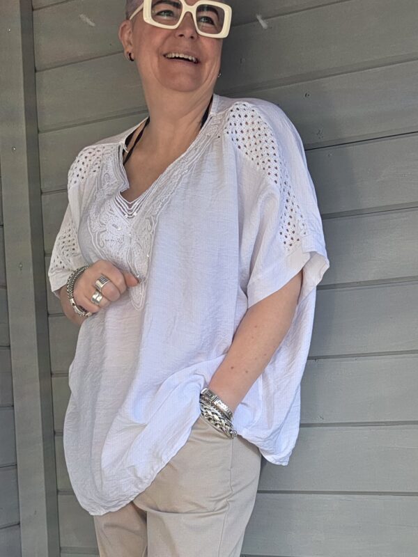Genk shirt/curvy/pailetten v-hals/wit