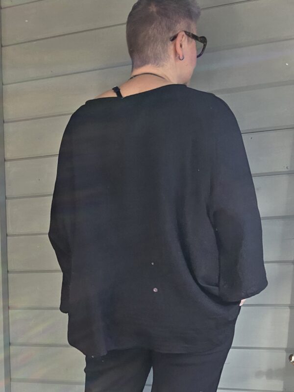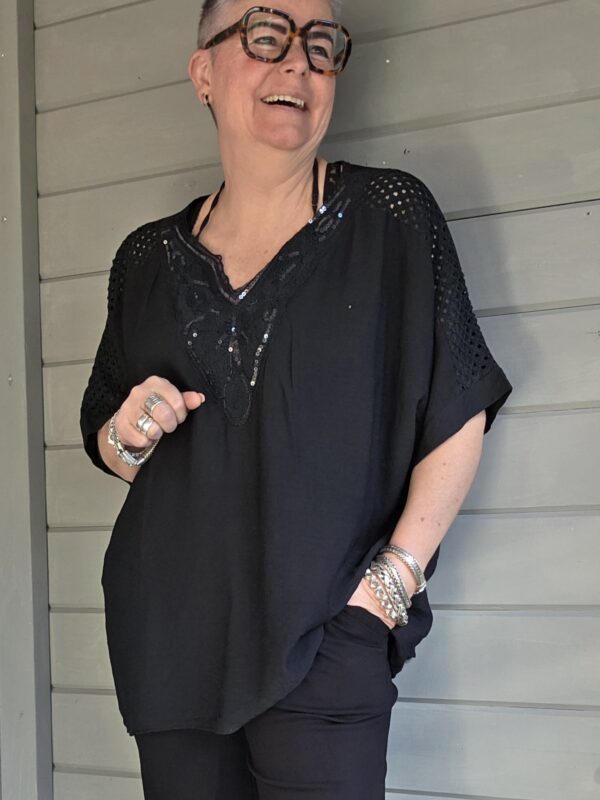 Genk shirt/curvy/ pailletten v-hals/zwart