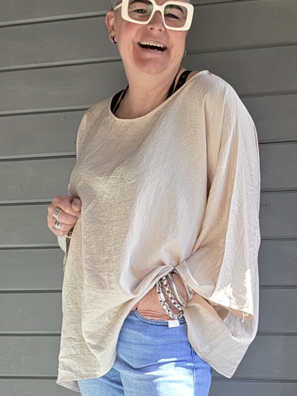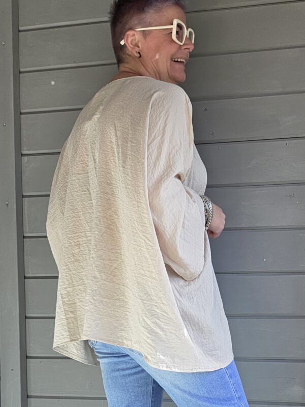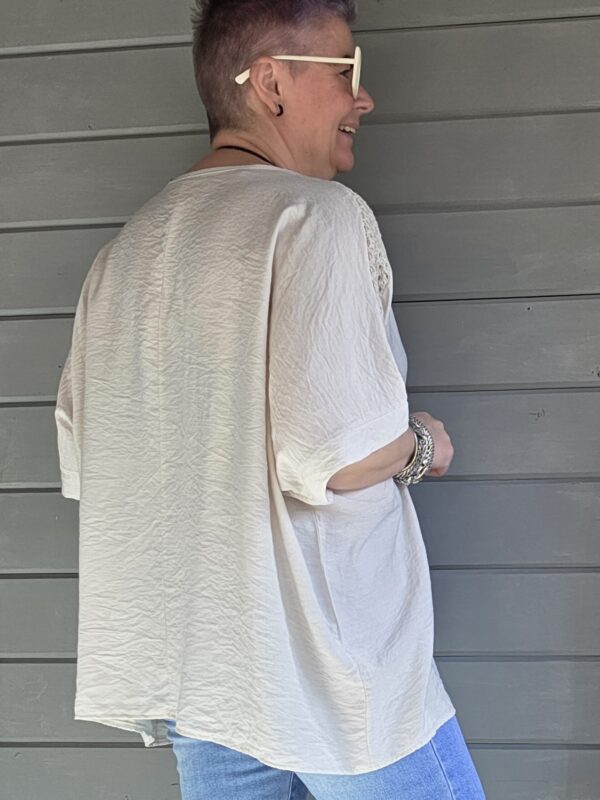Genk shirt/curvy/pailletten v-hals/beige