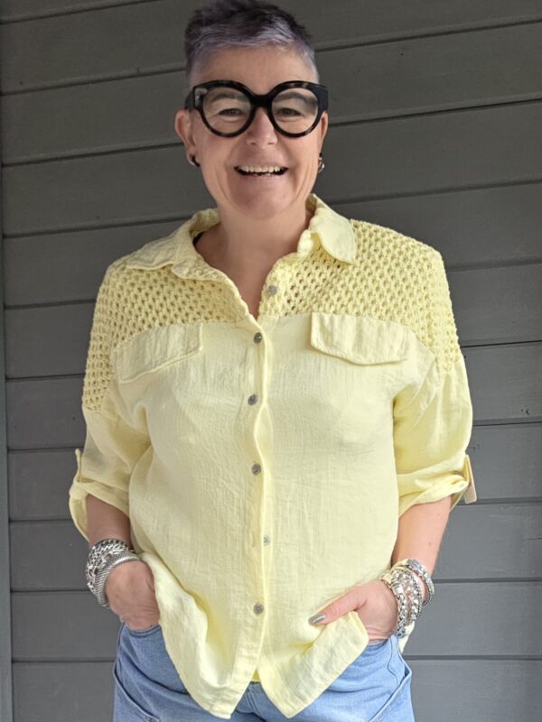 Fez blouse/kant/geel
