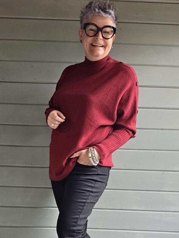 Mechelen trui met knopen op mouw/port