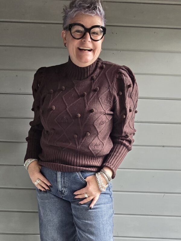 Meddo trui/pompons/bruin