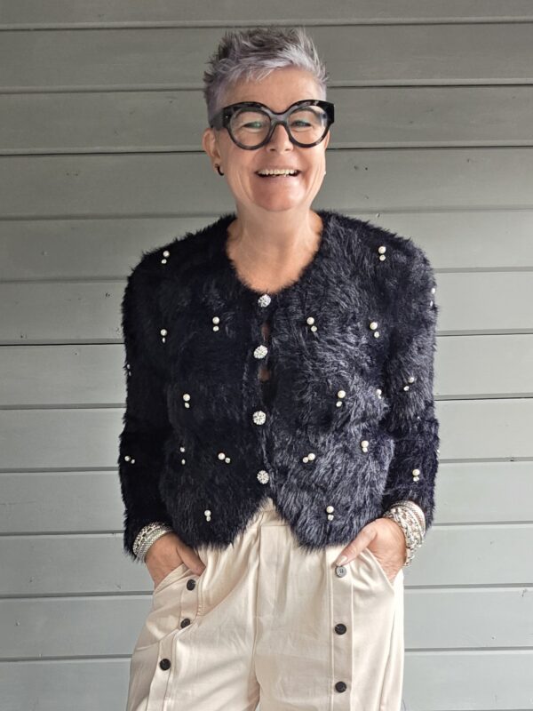 Geffen vest/fluffy/parel/zwart