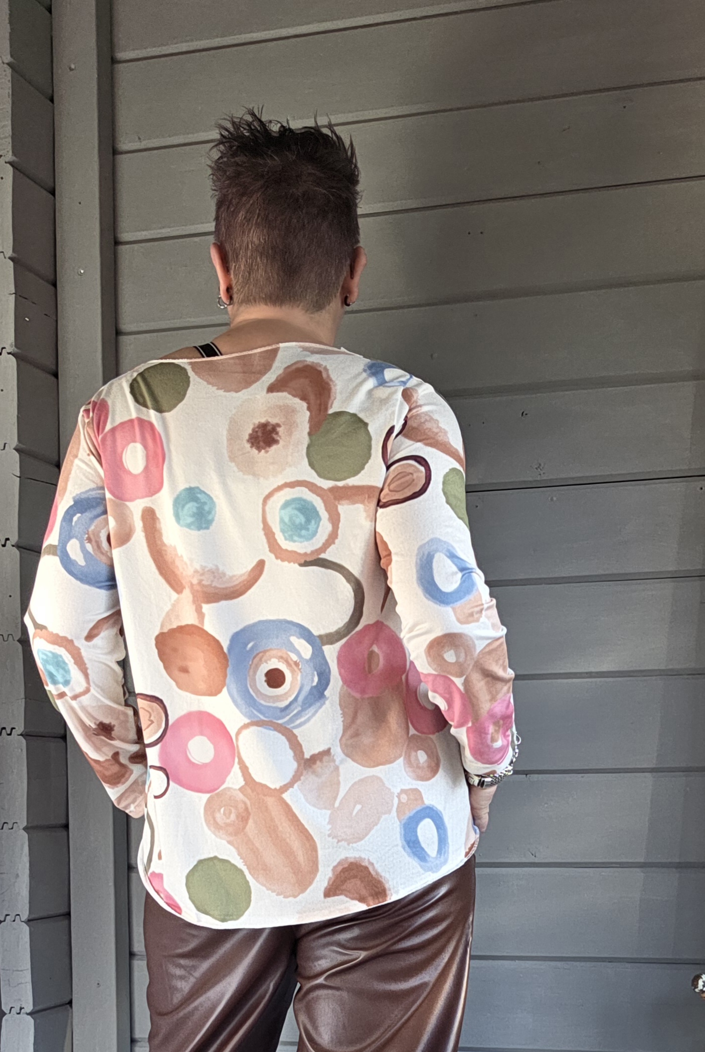 Leuke print, met lekker veel kleuren erin, zo kun je er van alles overheen, maar ook onder dragen.