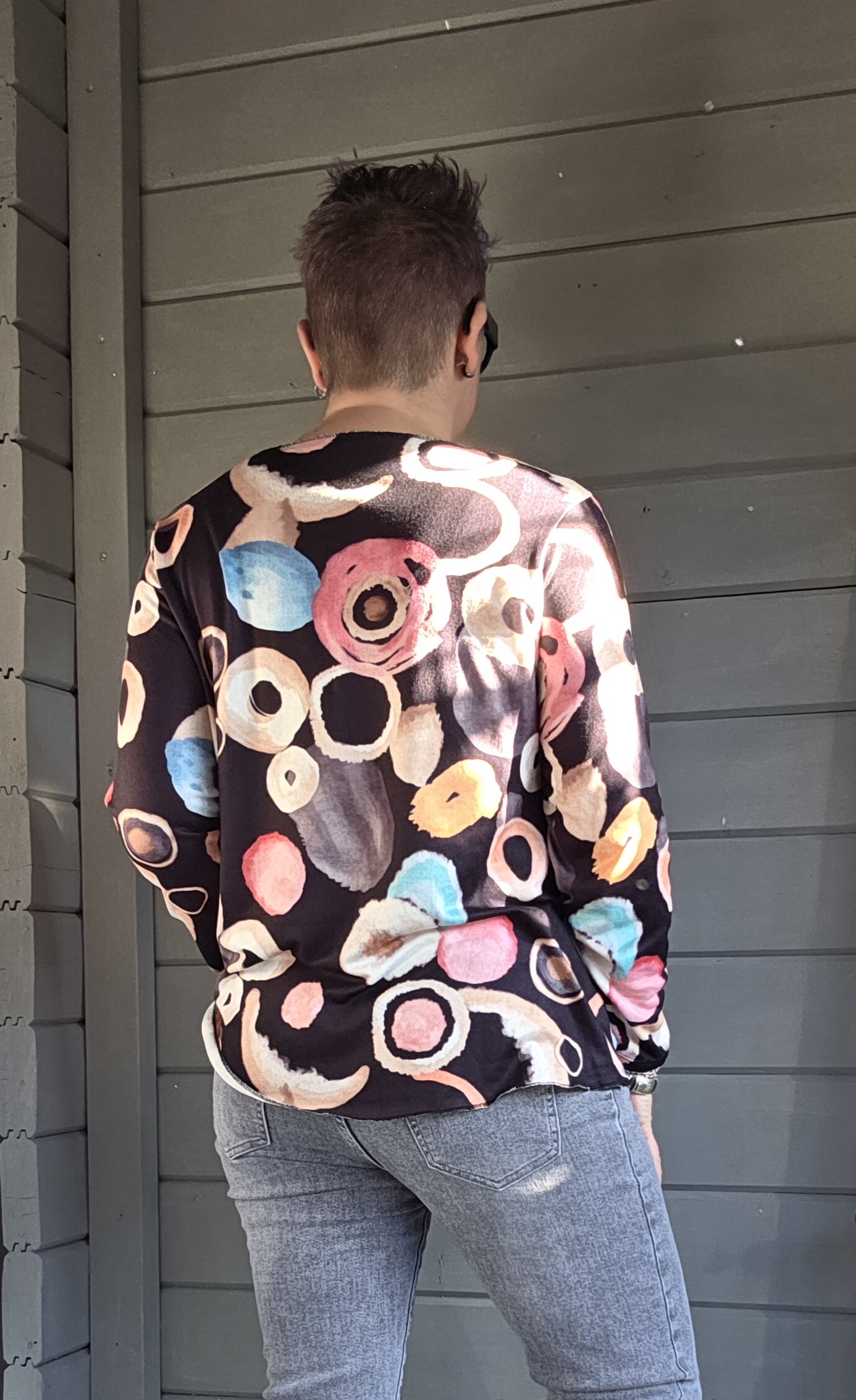 Leuke print, met lekker veel kleuren erin, zo kun je er van alles overheen, maar ook onder dragen.