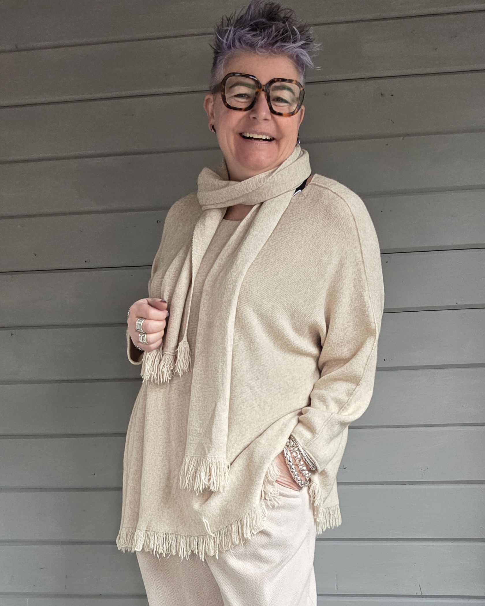 Beijing trui/met sjaal offwhite