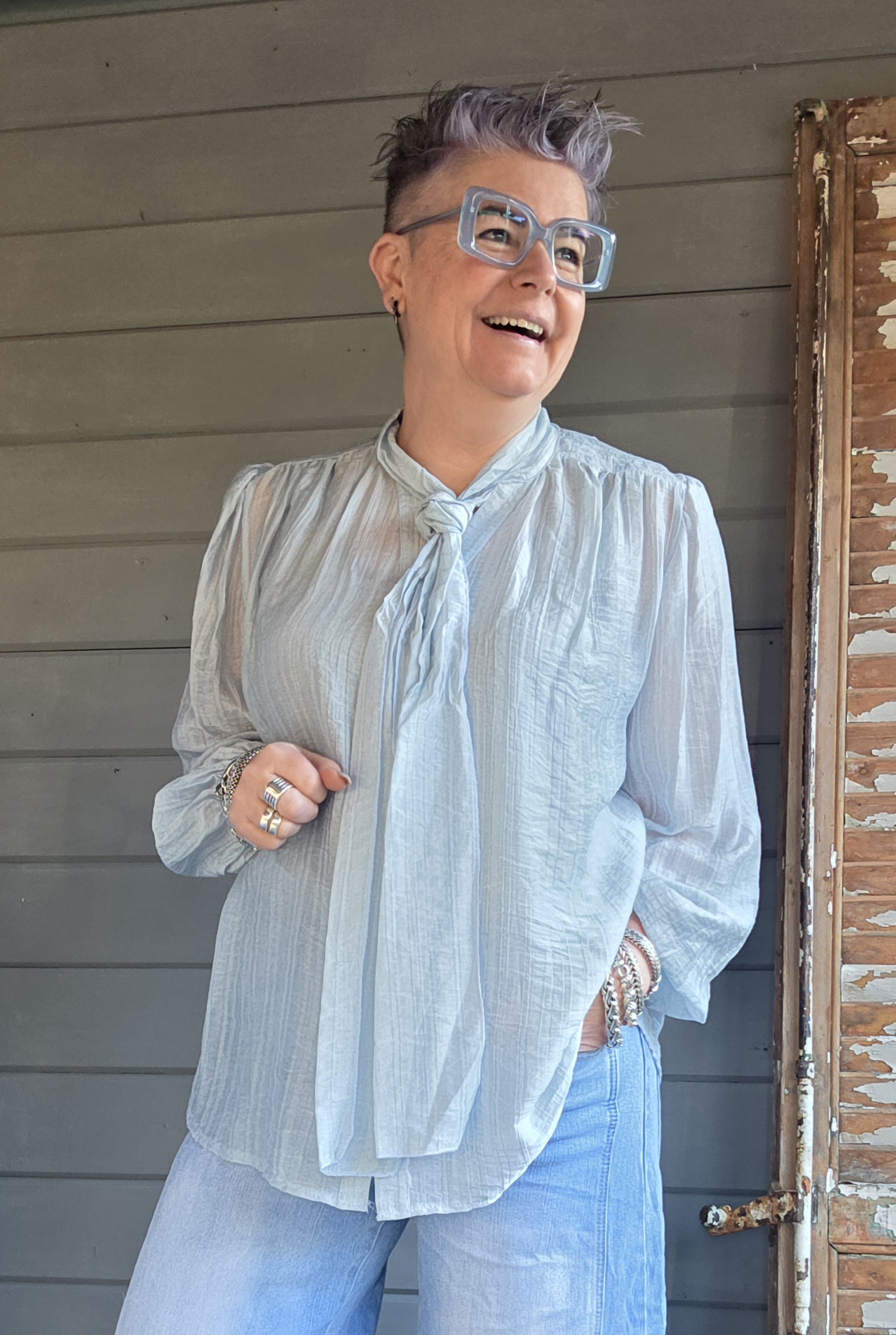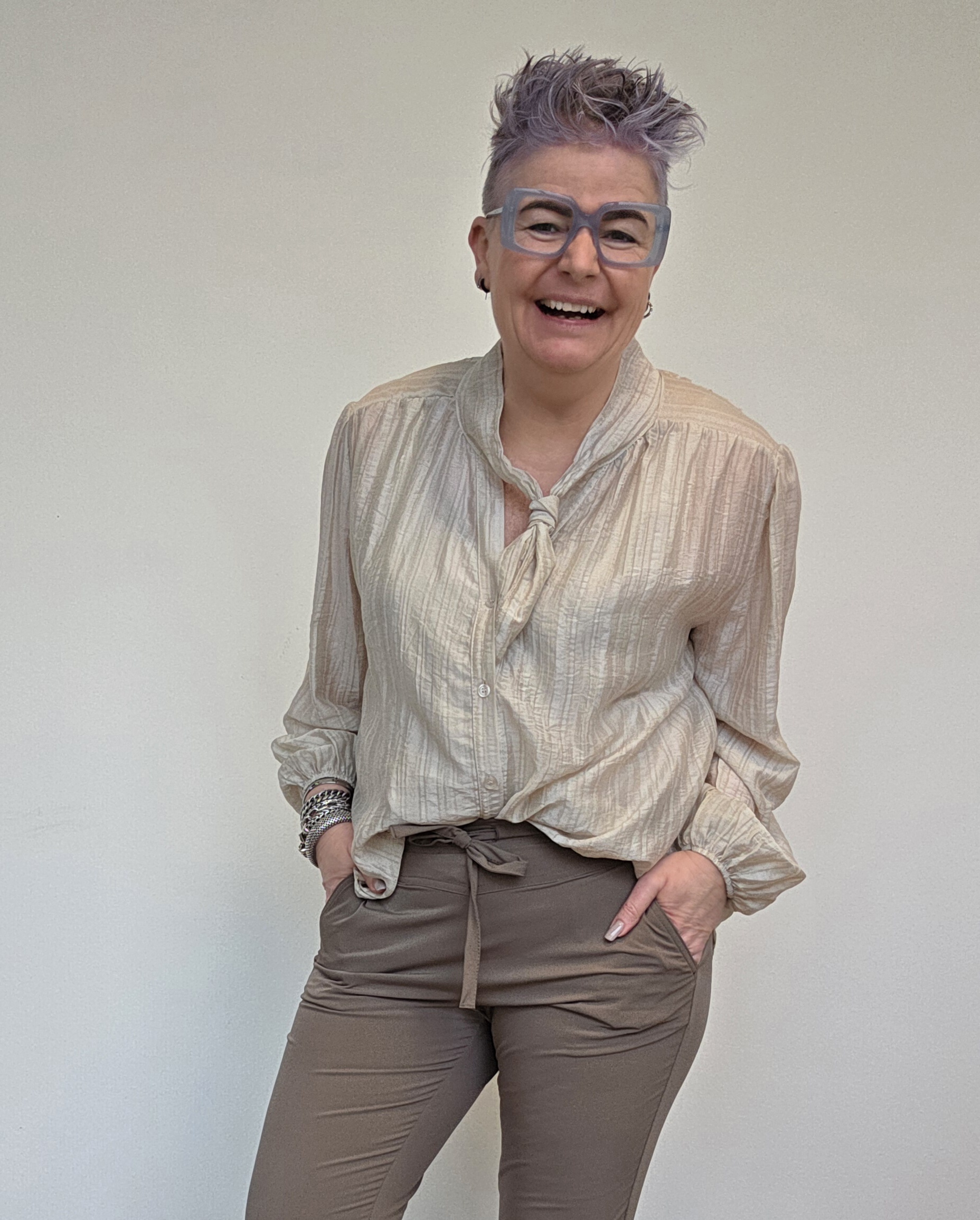 De blouse heeft een strik, maar vind het zelf leuker/stoerder om als stropje te dragen.