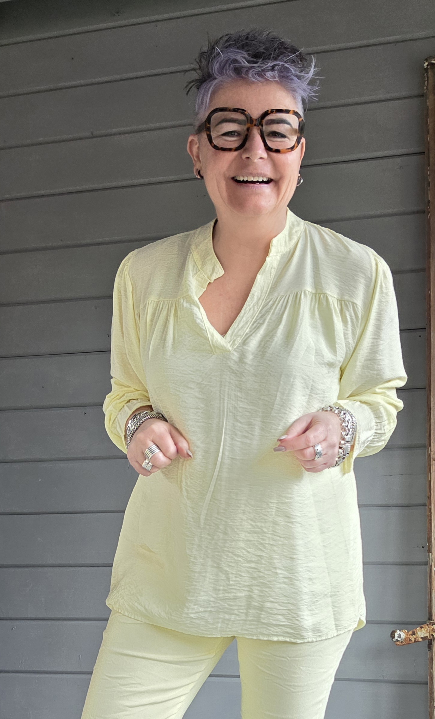 Fijne basic, onder een vest/blazer. Maar ook lekker om zo aan te schieten en je bent klaar. Door de stof draag je deze ook in de zomer door.