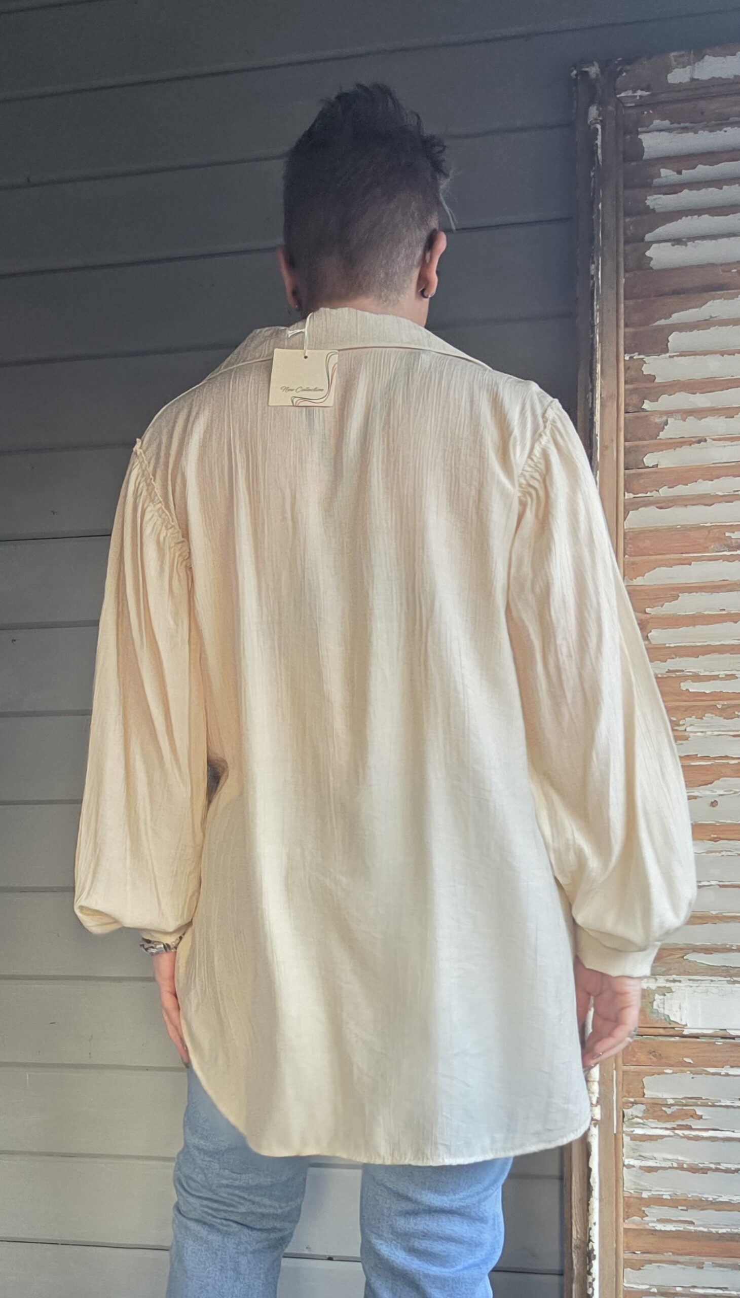 Blouse heeft een prachtige pofmouw.