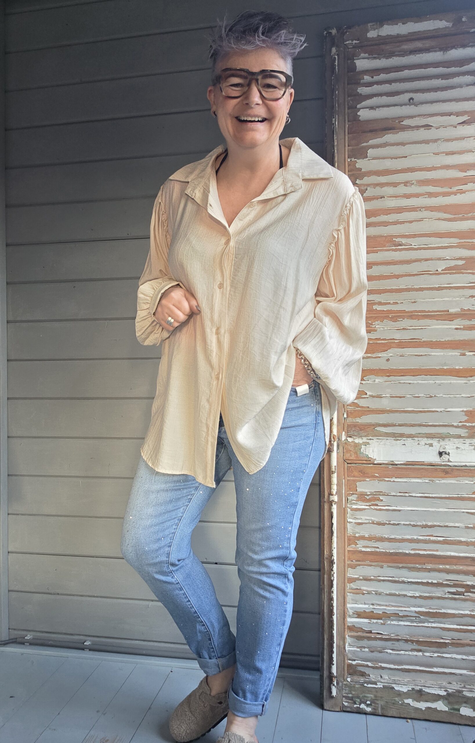 Bij 40-42 valt dez blouse oversized, voor de liefhebber, bij 44-46 passender, los nog wel tot een mt 48.