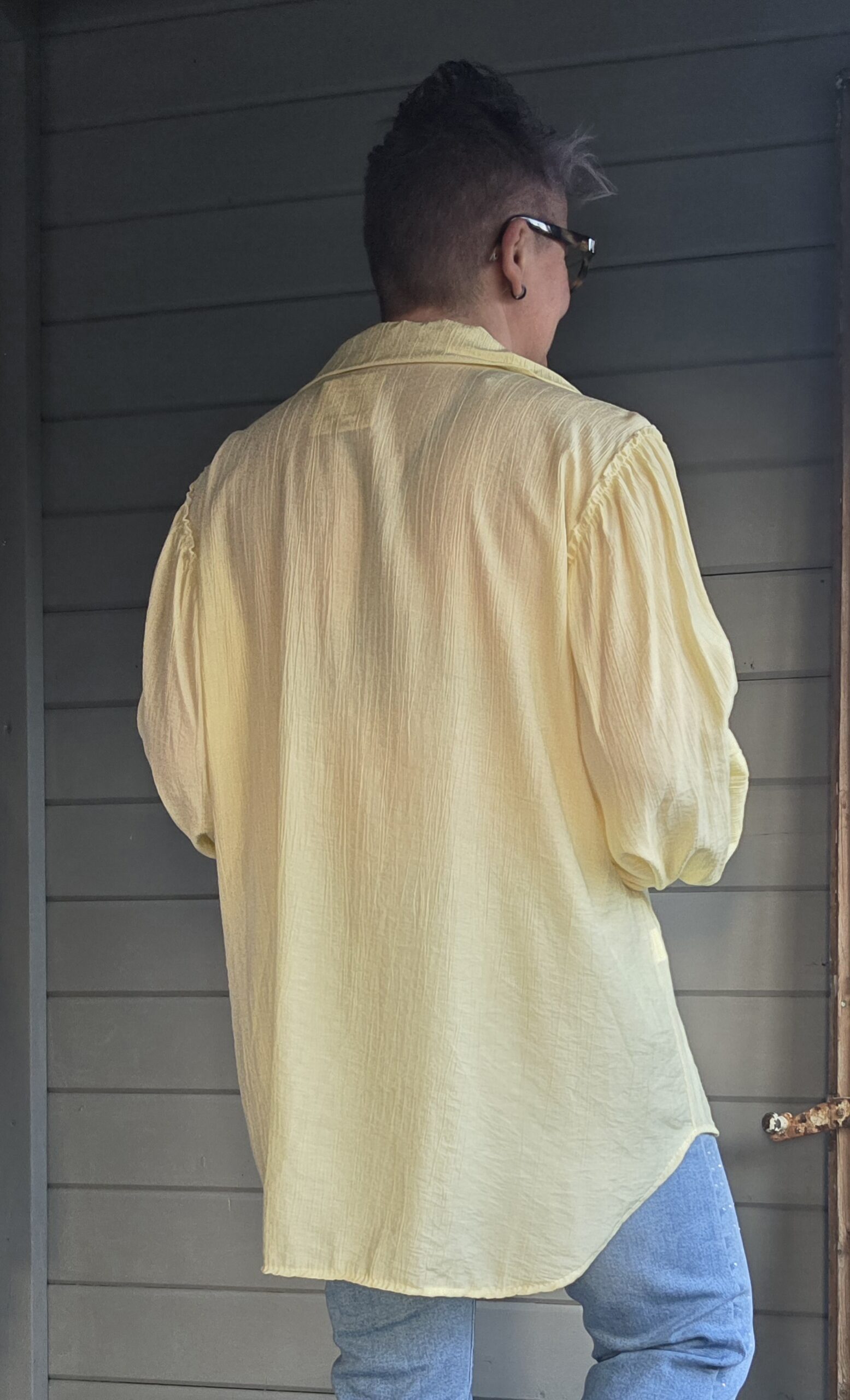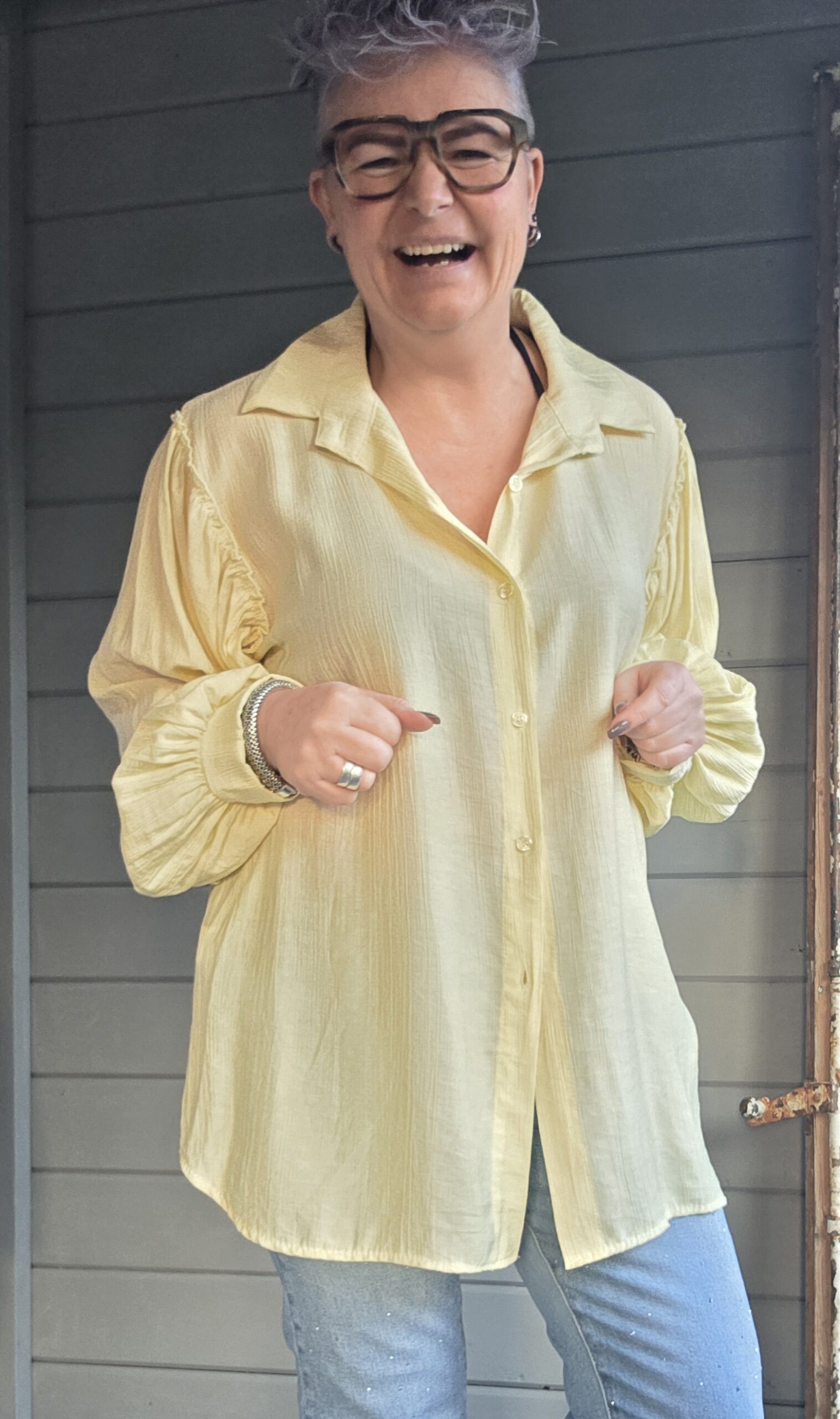 Blouse heeft een prachtige pofmouw.
