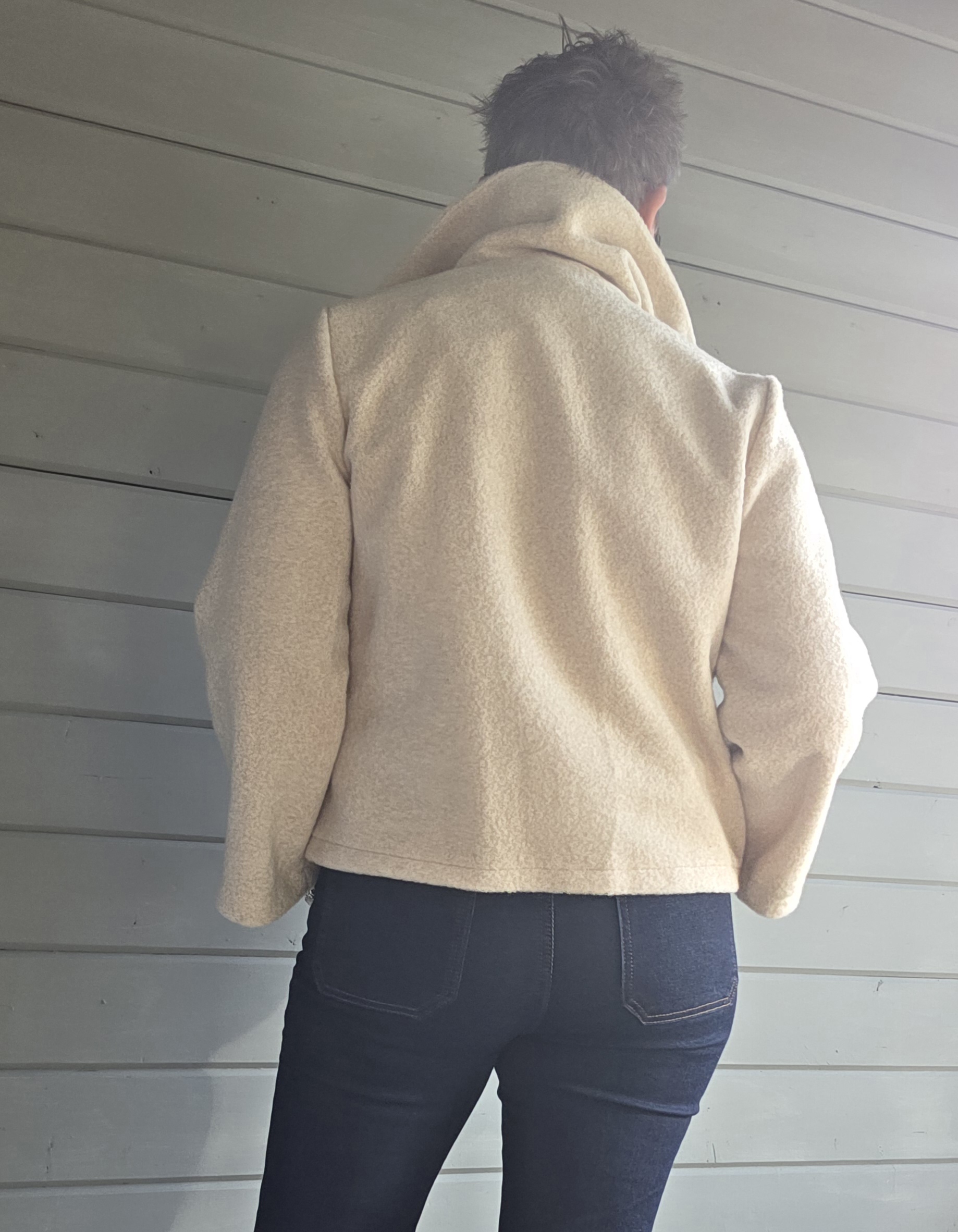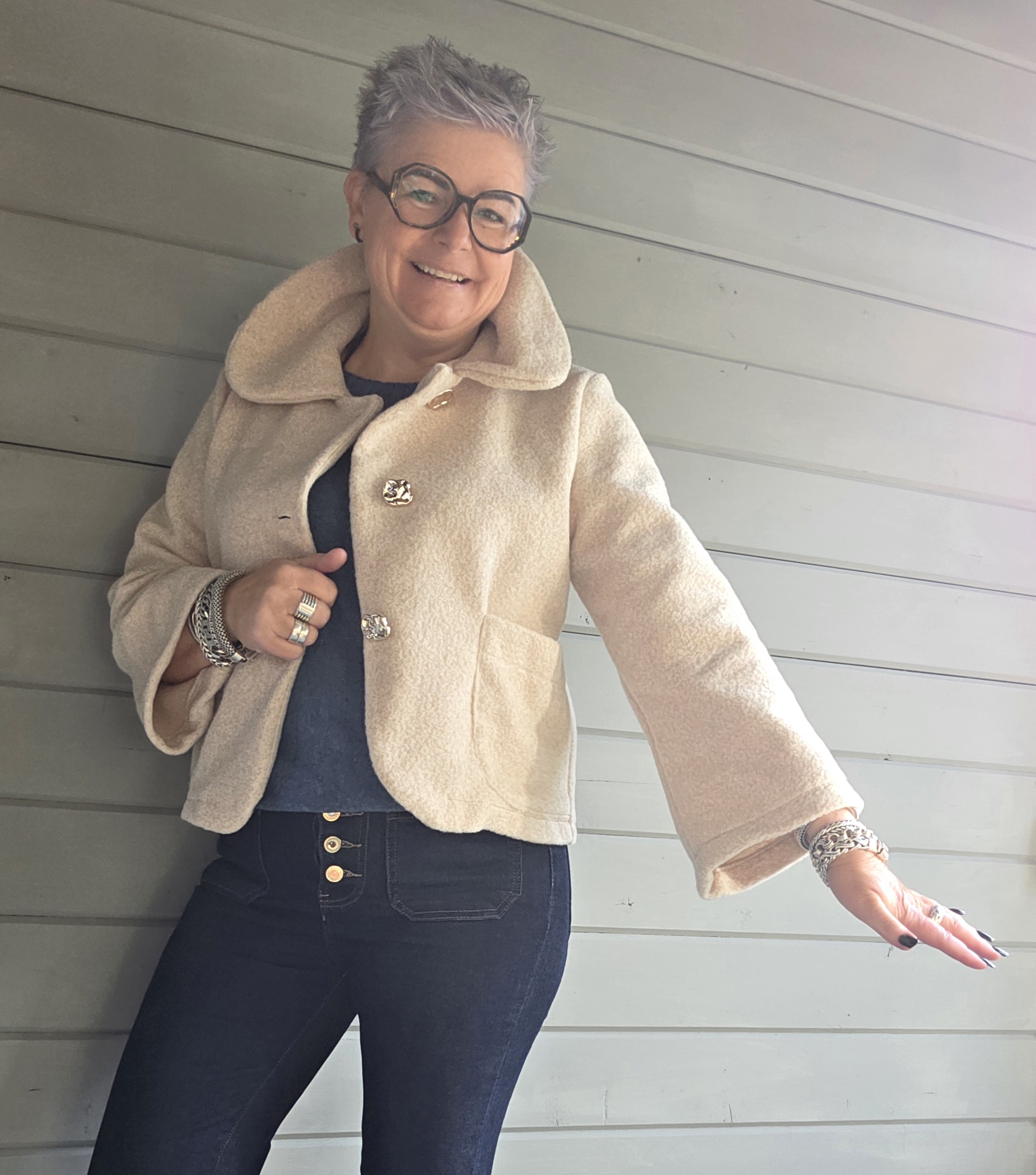 Heeft een uitlopend mouwtje, die bewust wat korter valt, zodat je laagjes creeert en de mouw eronder uit piept.