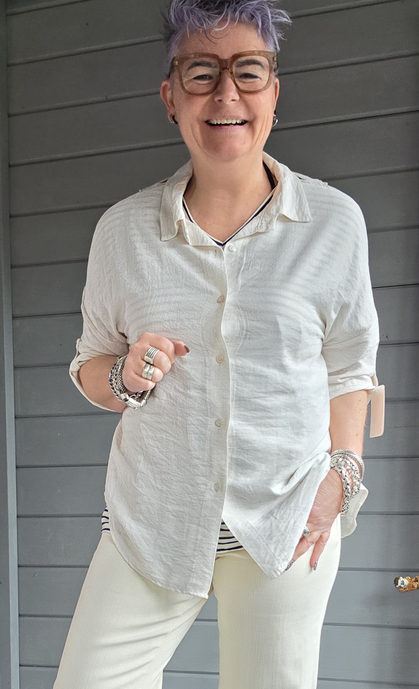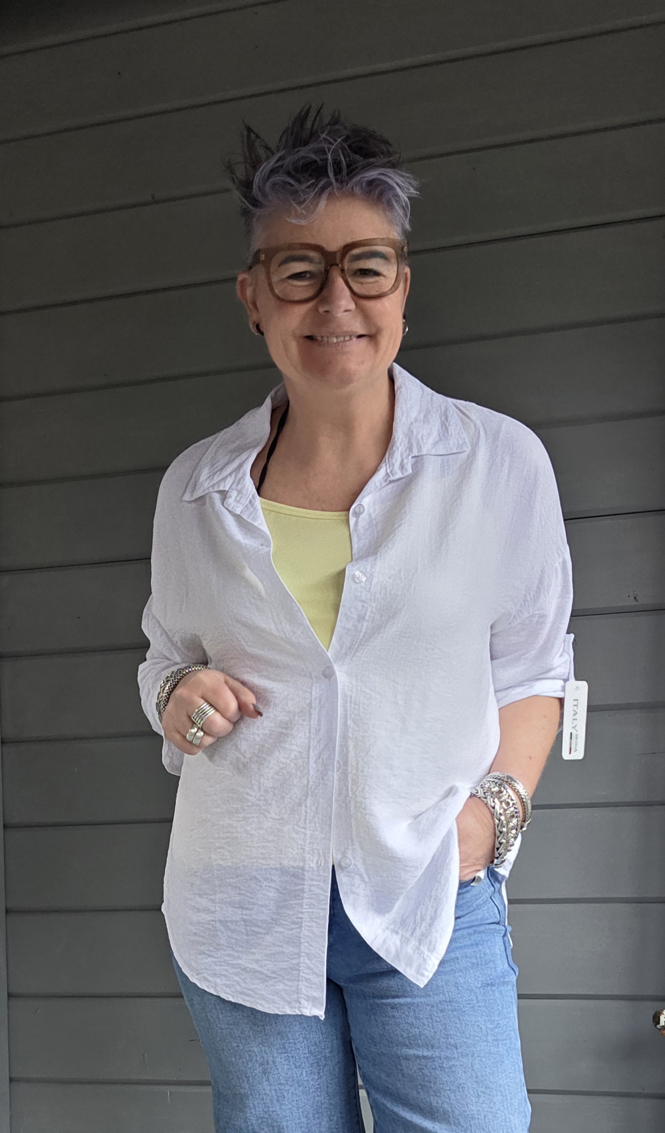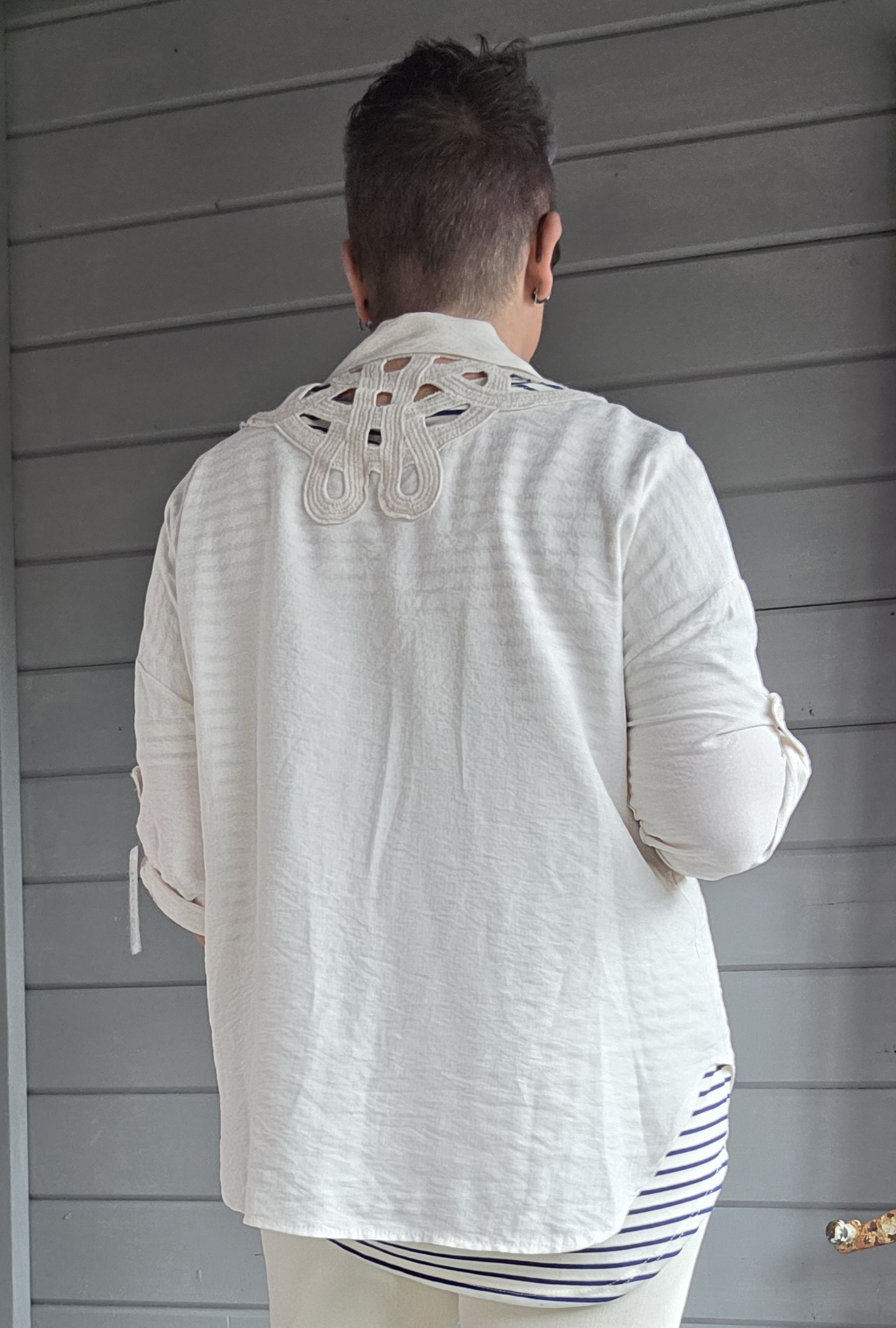 Blouse heeft als eye-catcher achterop broderie.