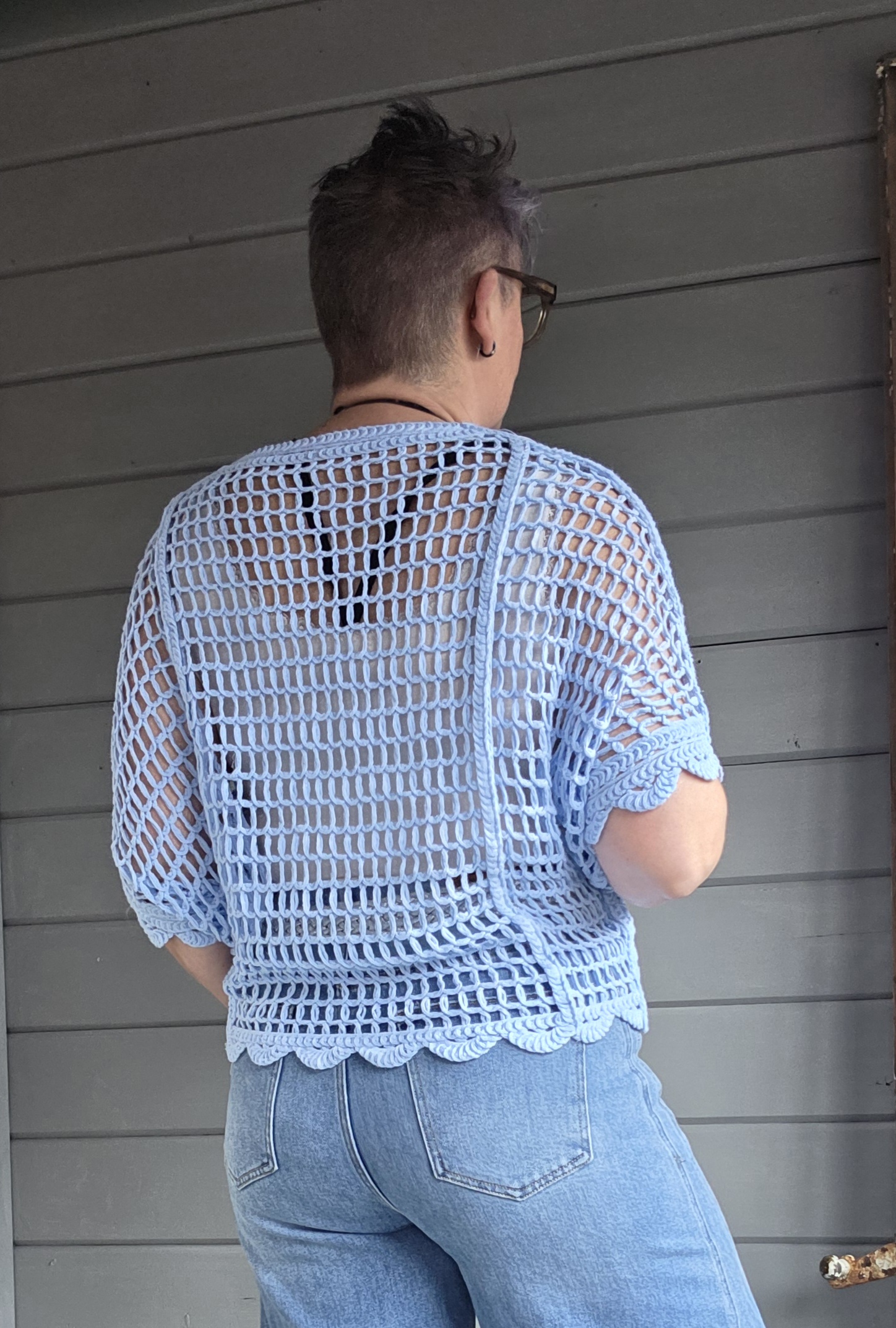 Is het frisser draag je er een blouse of shirt met lange mouw onder en een broek.