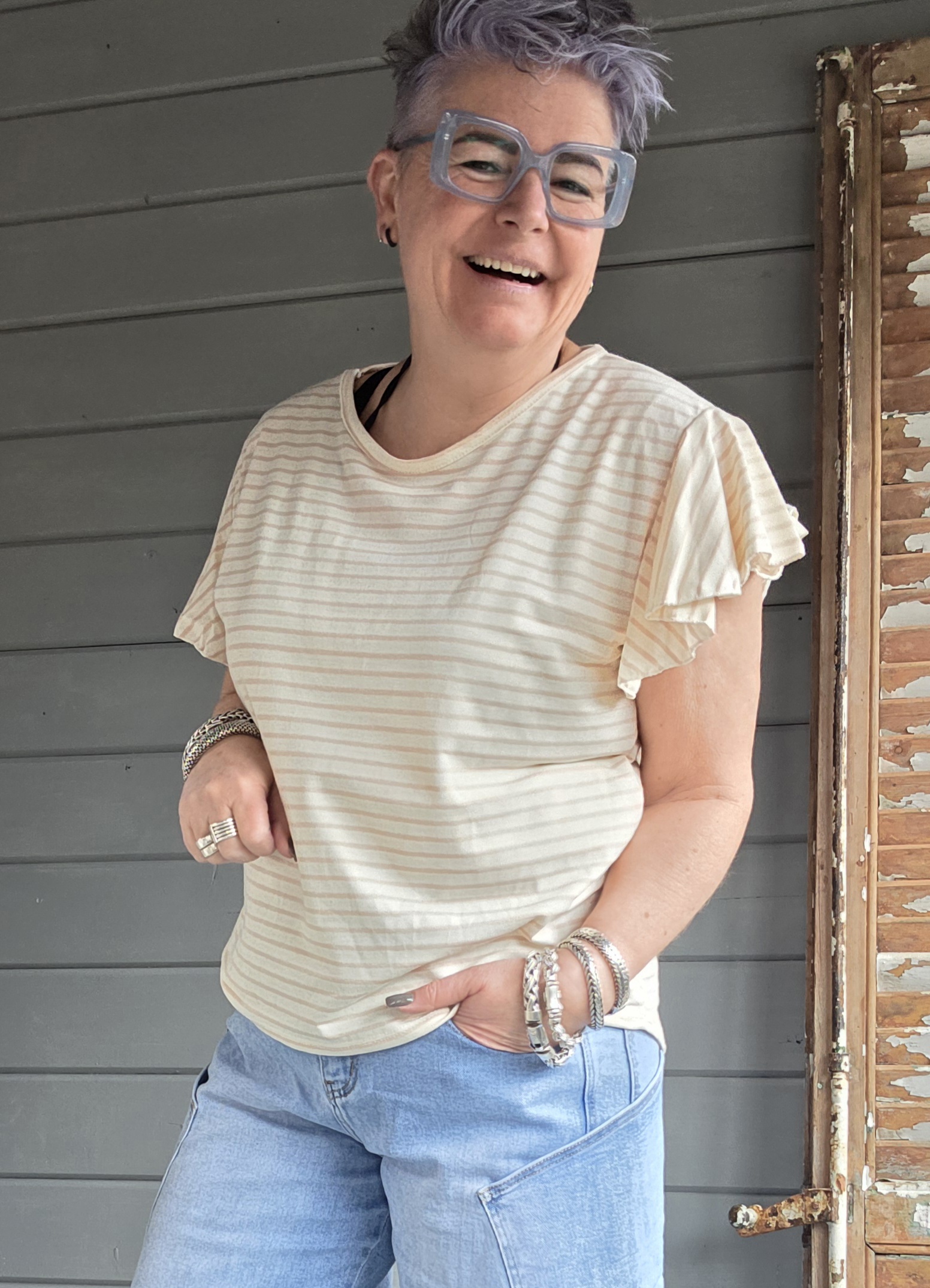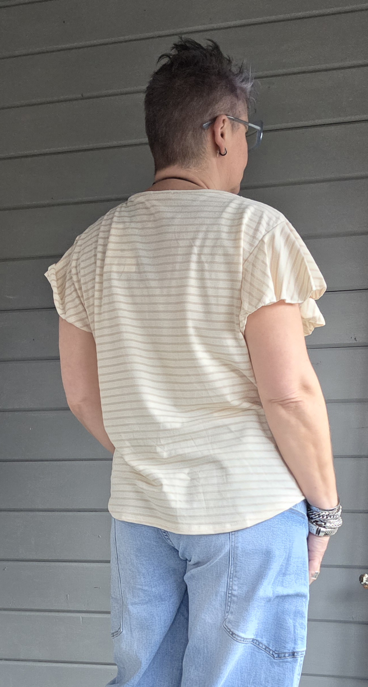 Deze heeft een ronde hals en een klokkend mouwtje
