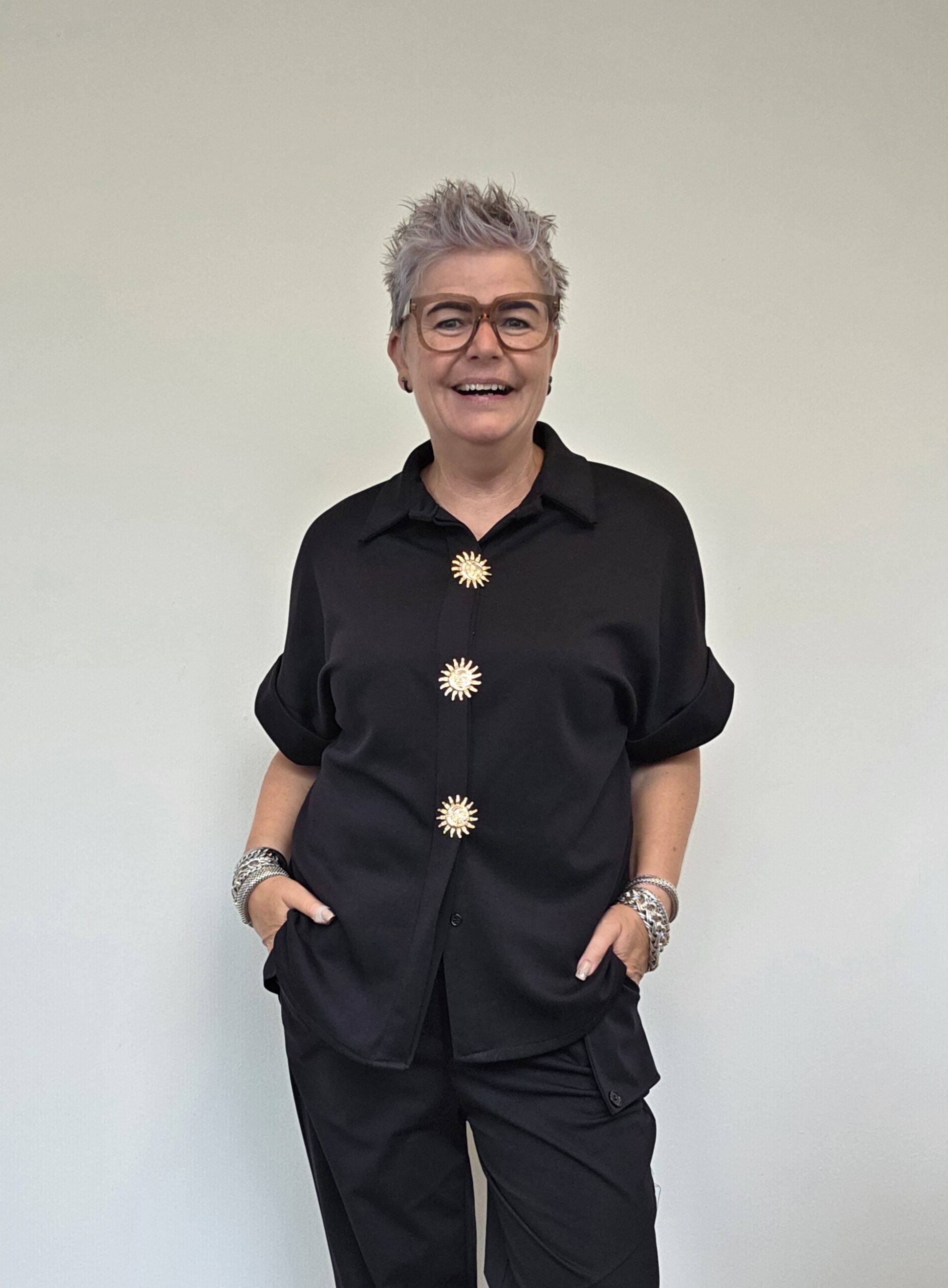 De eyecatchers, de gouden zonnetjes zijn broches, dus die kunnen eraf.