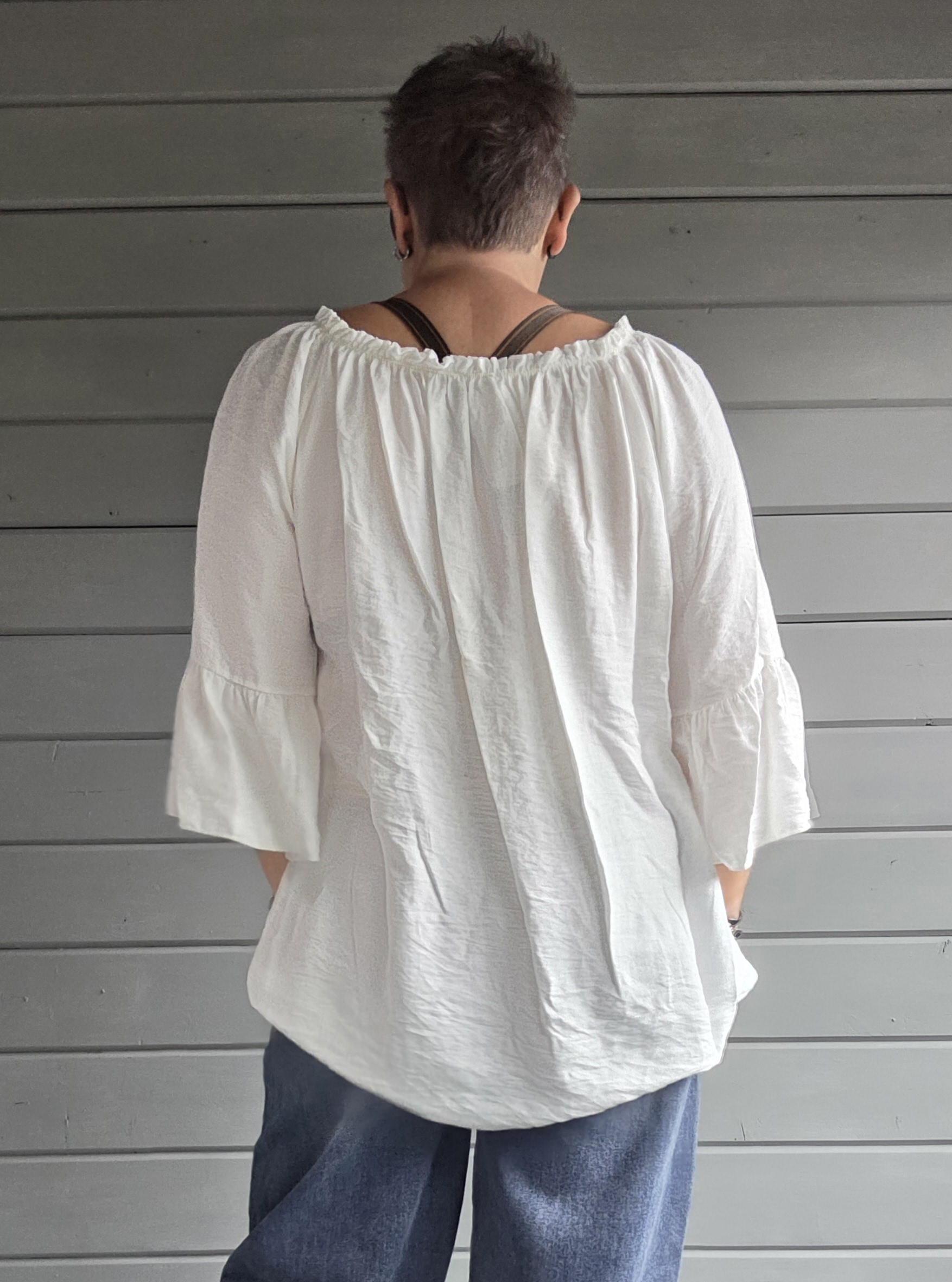 Heerlijk shirt, ook ietwat off-shoulder te dragen door het elastiek bovenin.