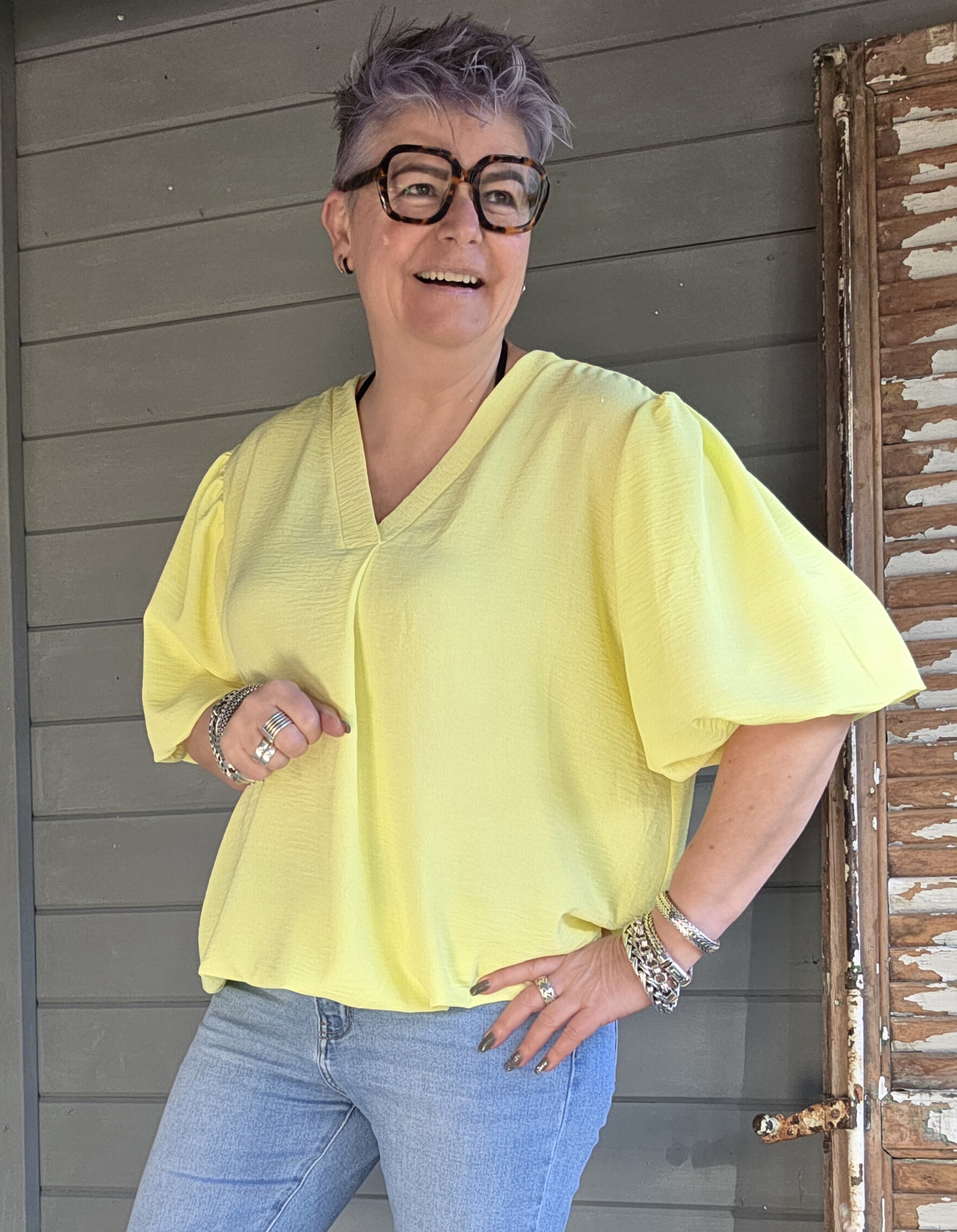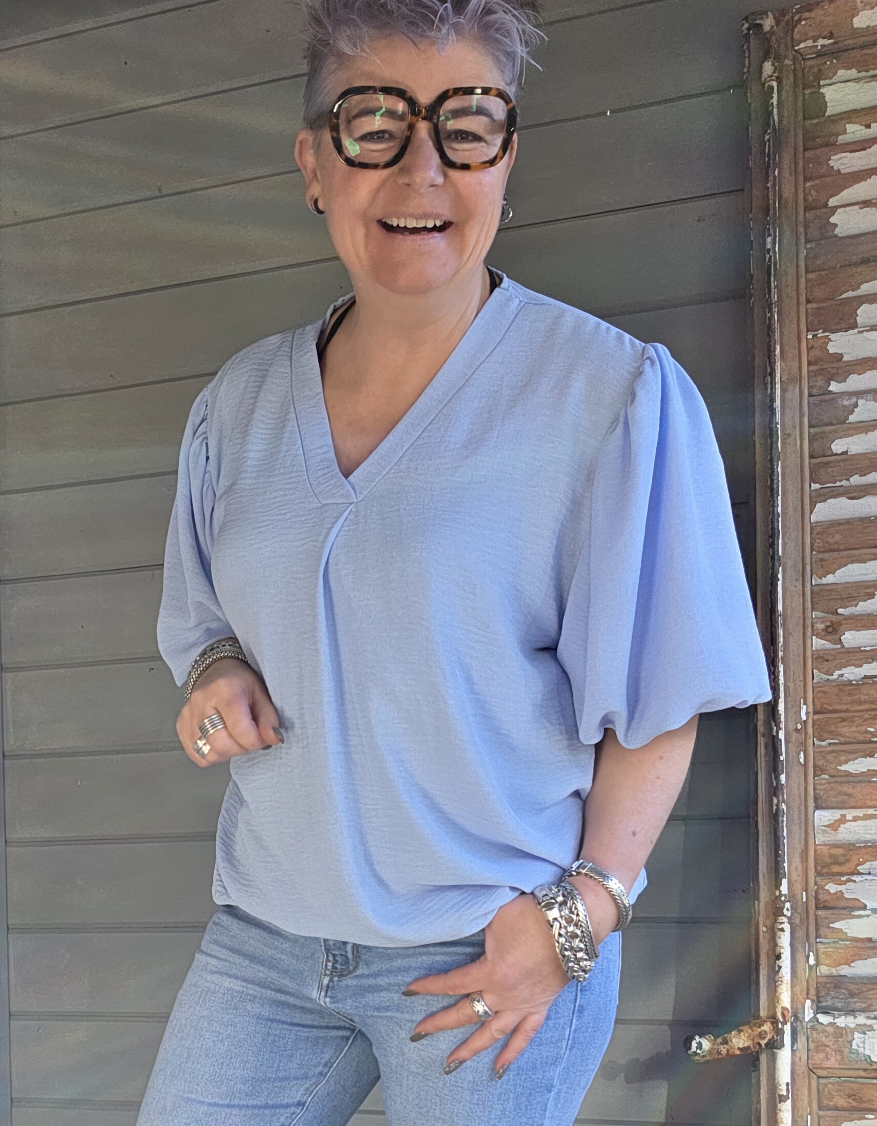 Prachtige mouw, heeft dit shirt, goede V-hals.