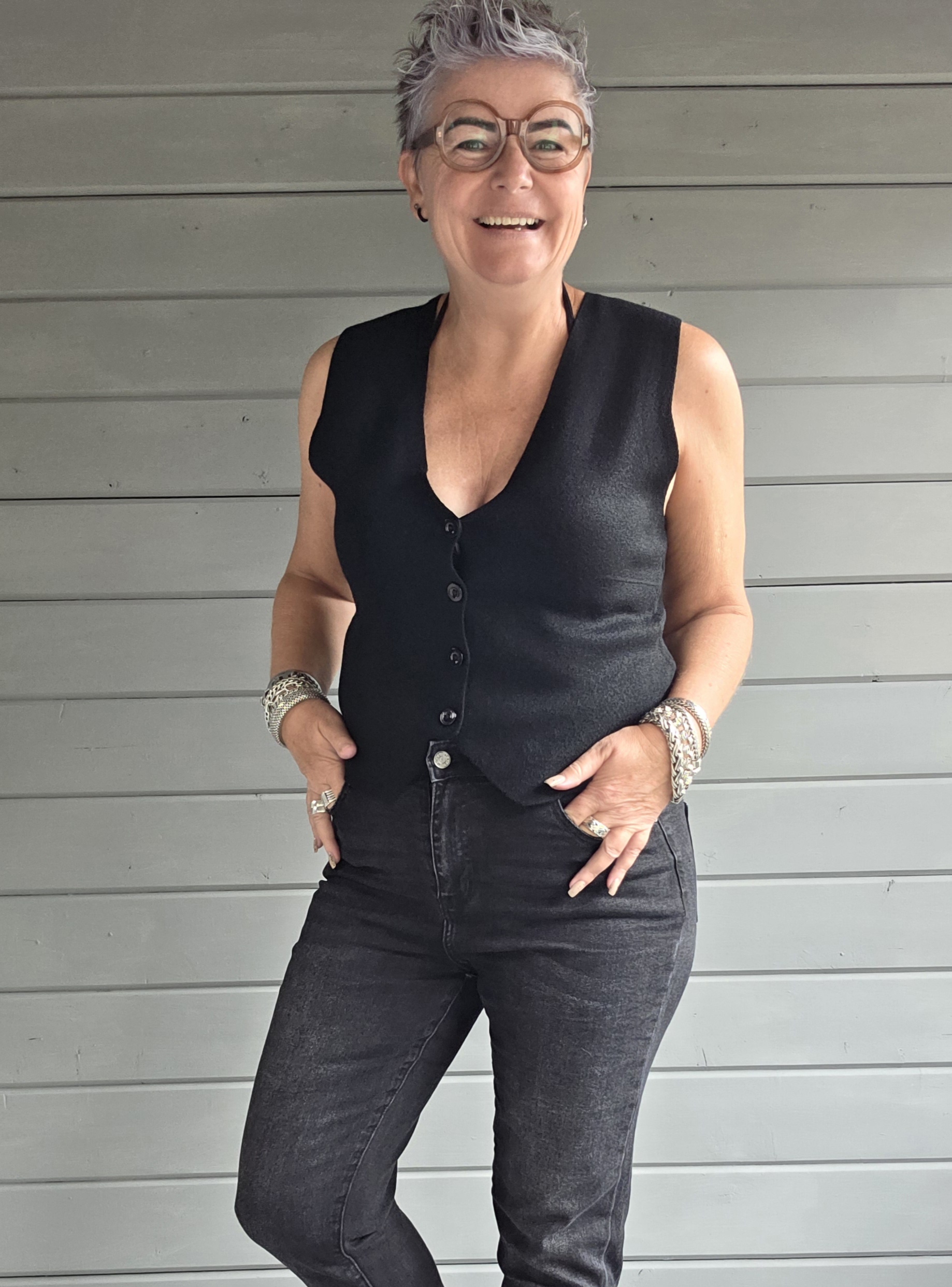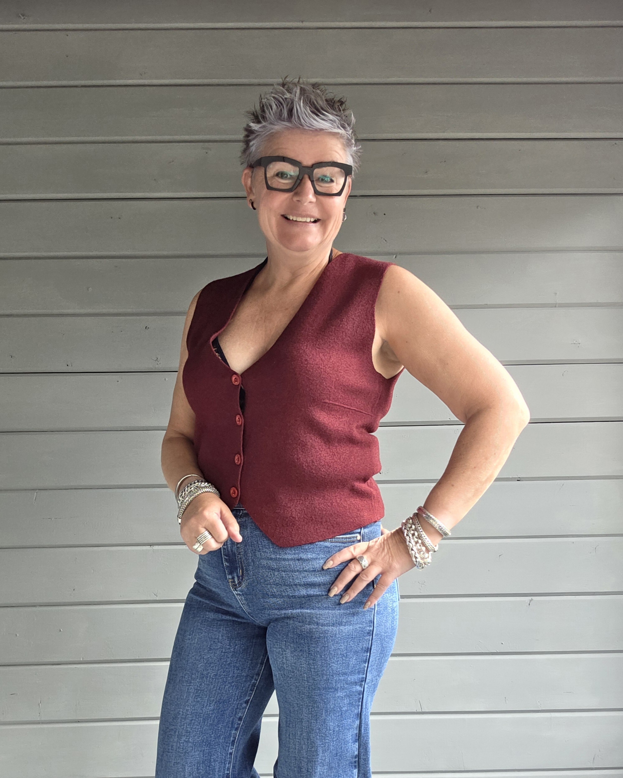 Gilets draag je dit seizoen onder een vest/blazer, om er een andere draai aan te geven.