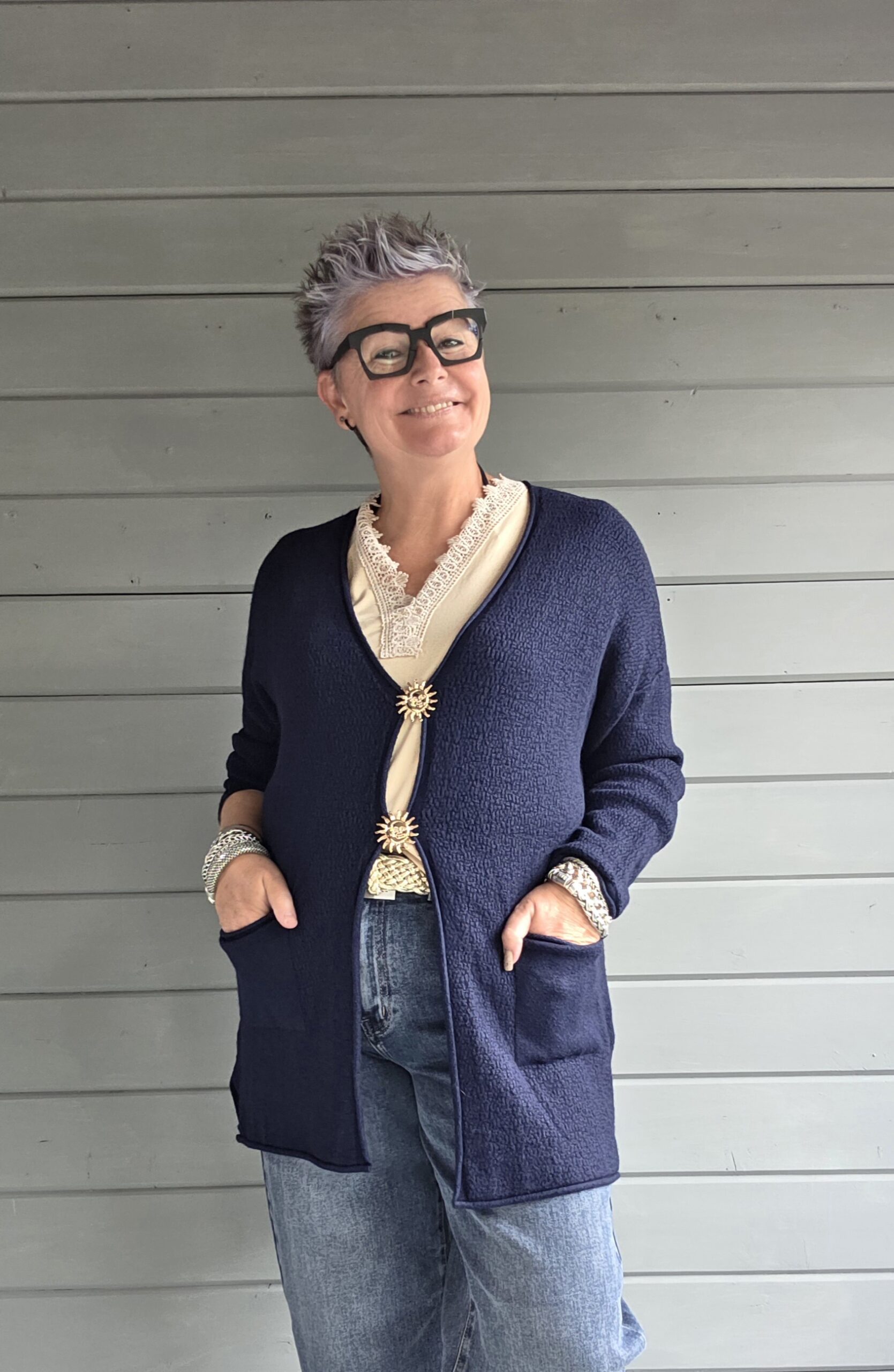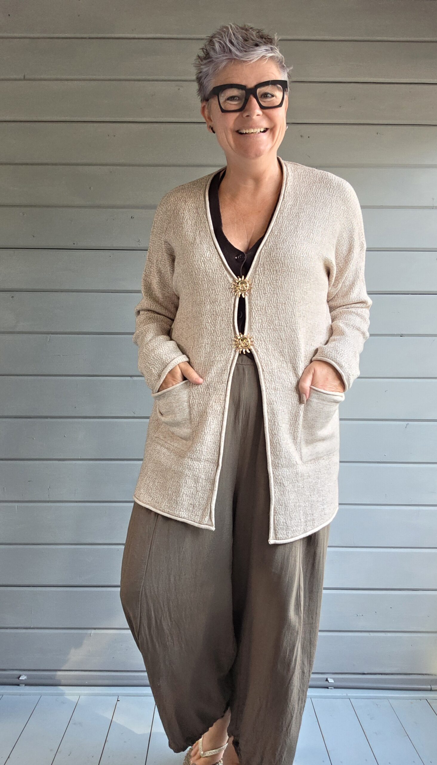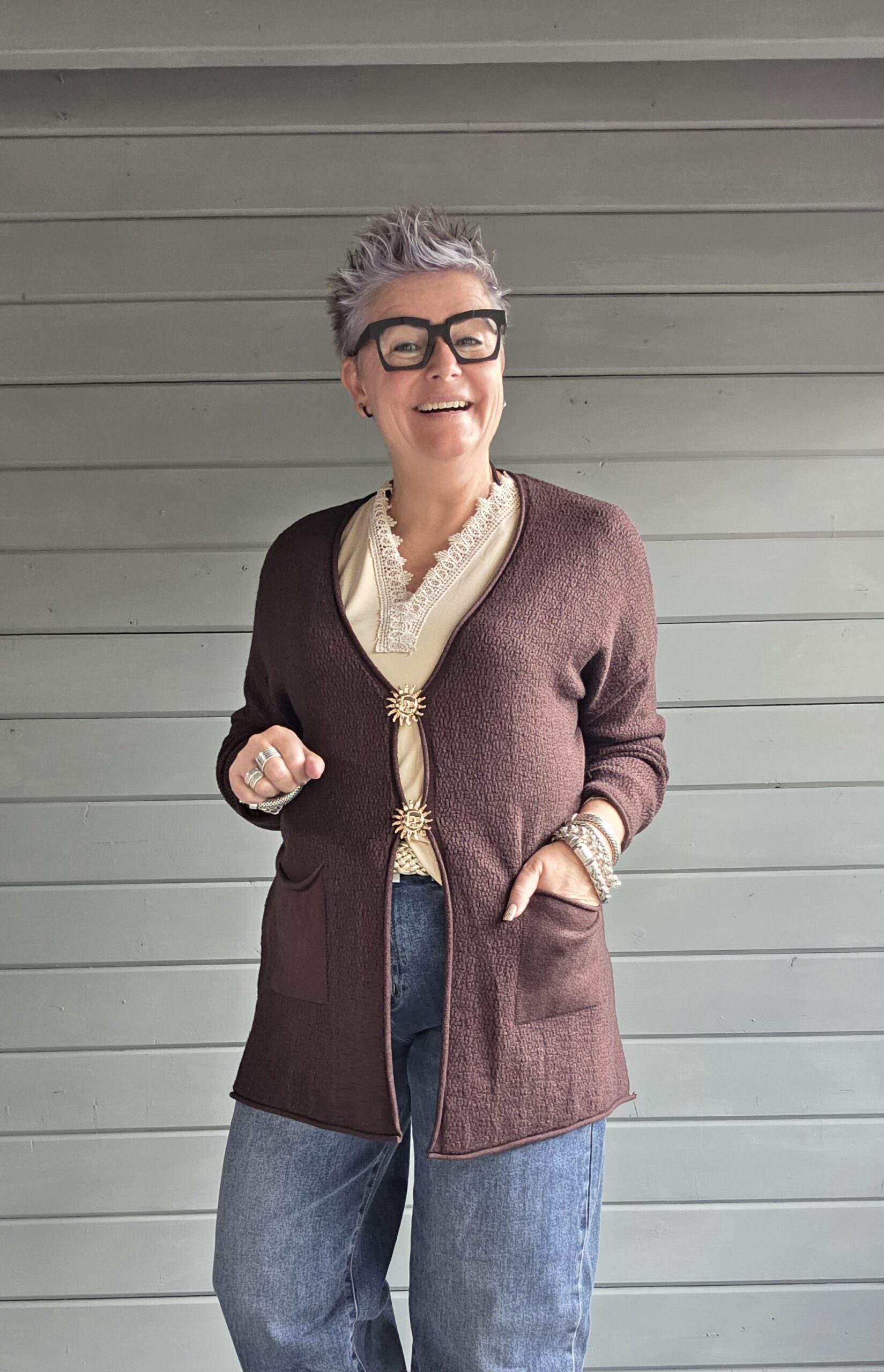 Vest heeft twee broches, zodat je het dicht kan dragen.