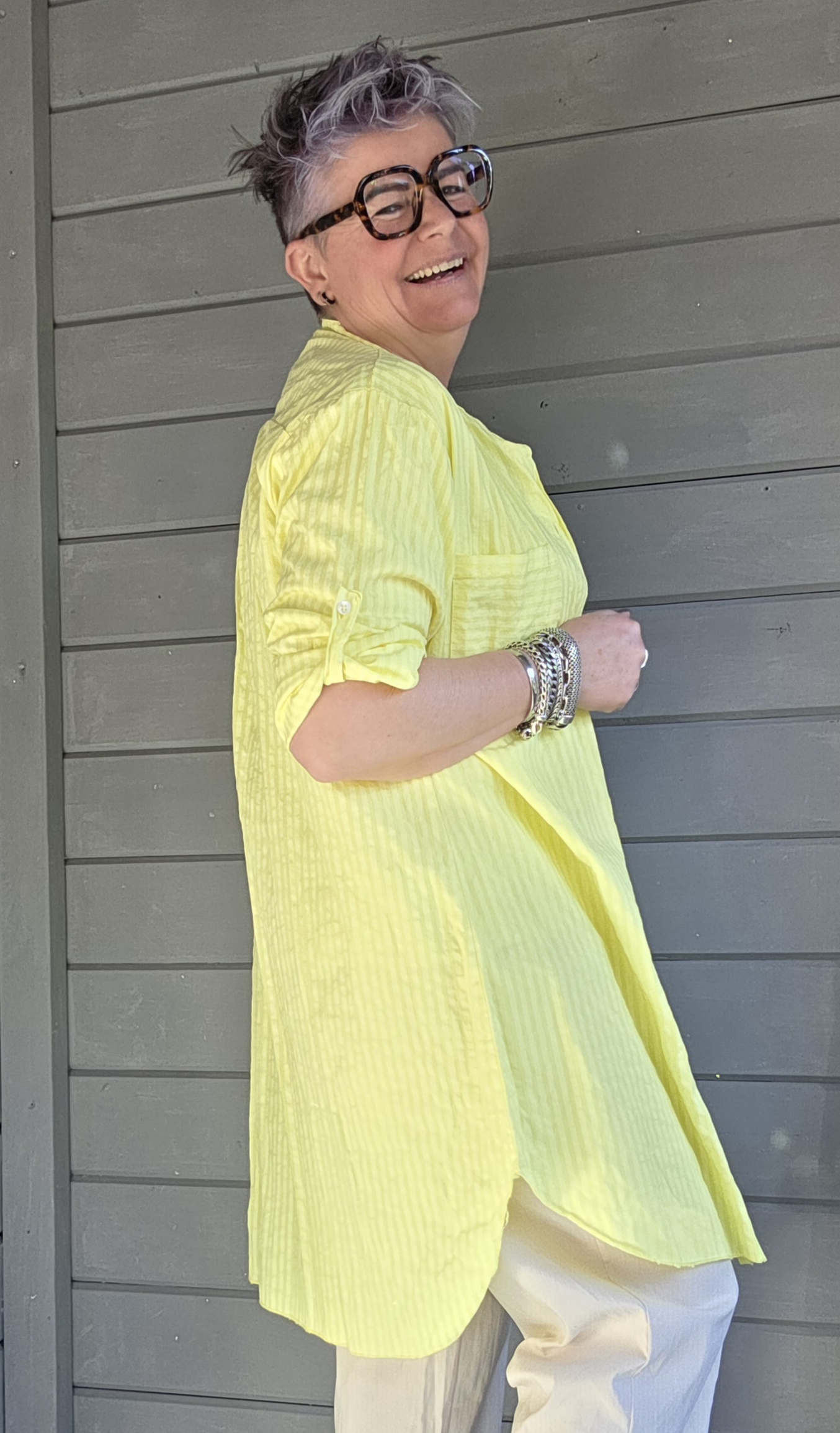 Je zou deze blouse ook dicht kunnen dragen als een jurkje.