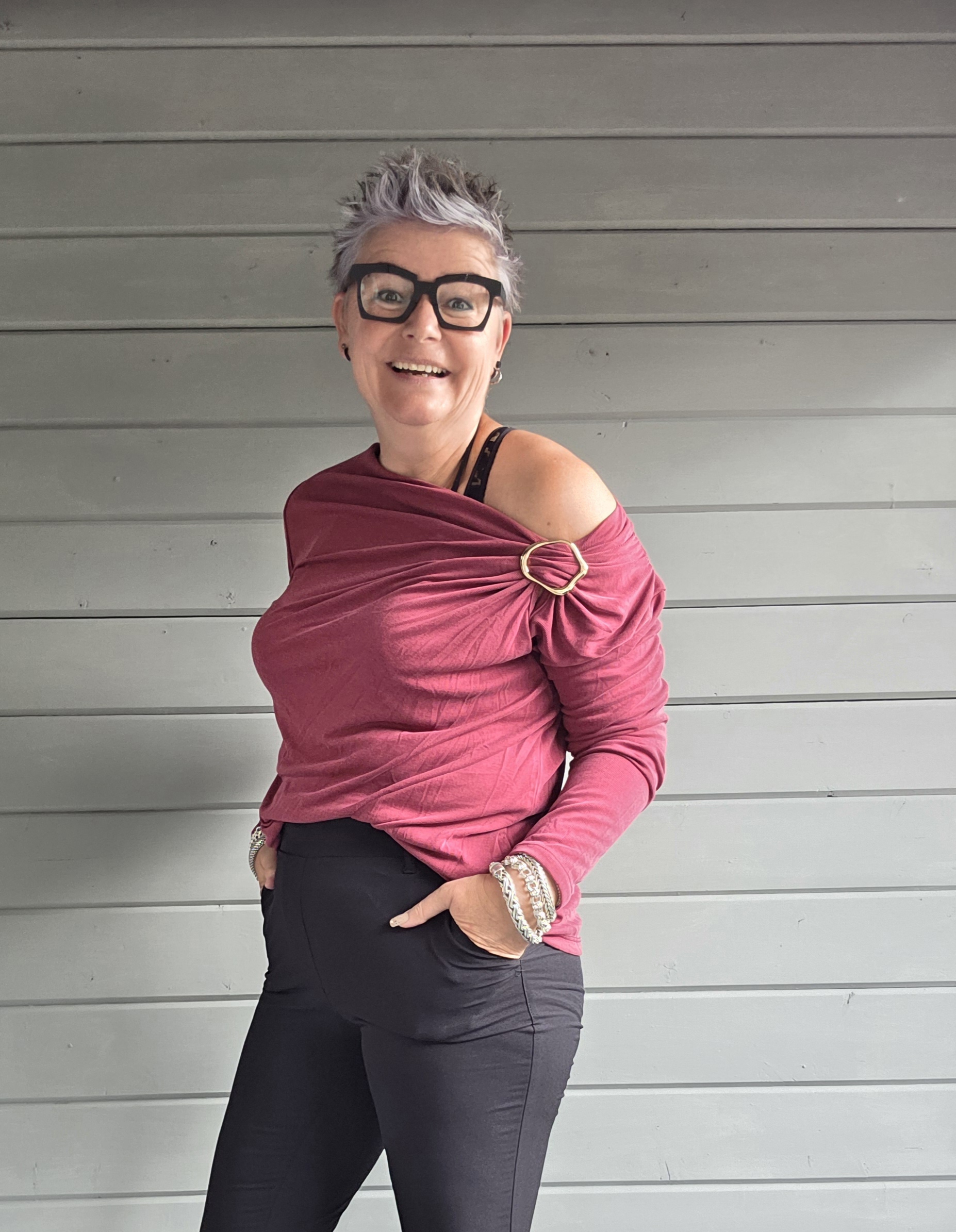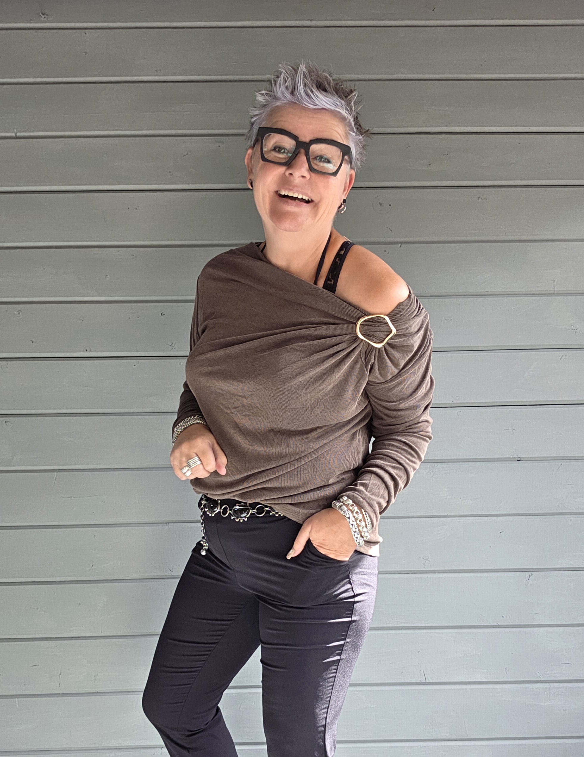 Je kunt m ook ietwat off-shoulder dragen