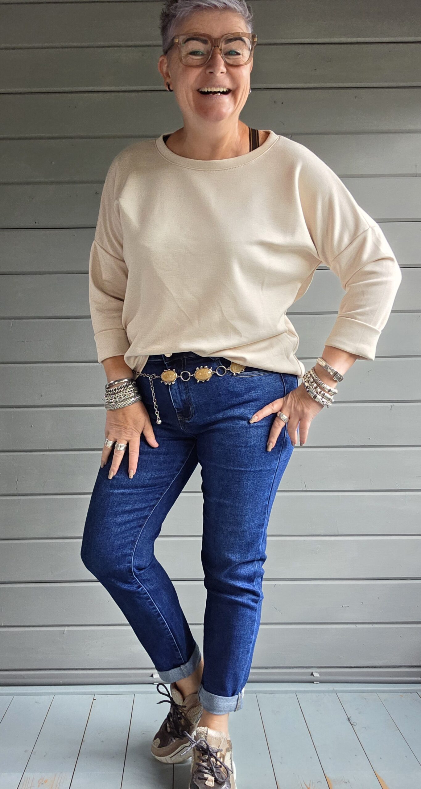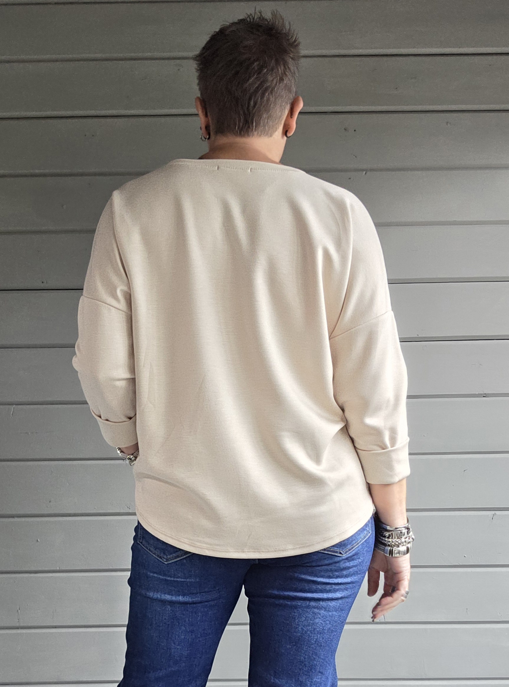 Lekkere nonchalante sweater, achter iets langer bij de bips