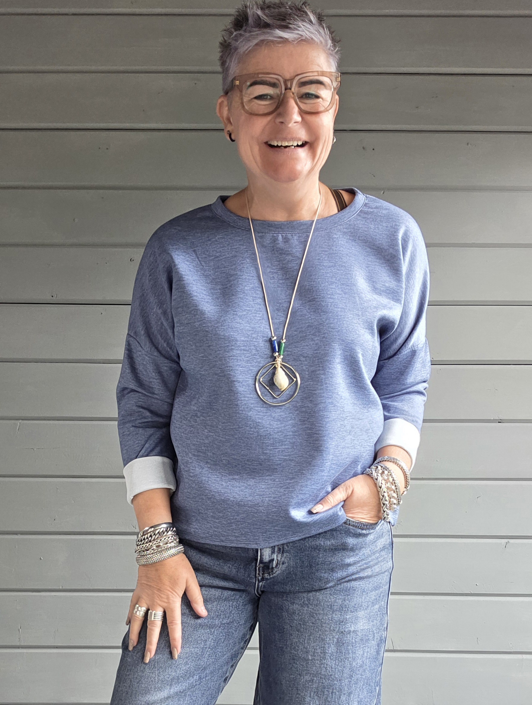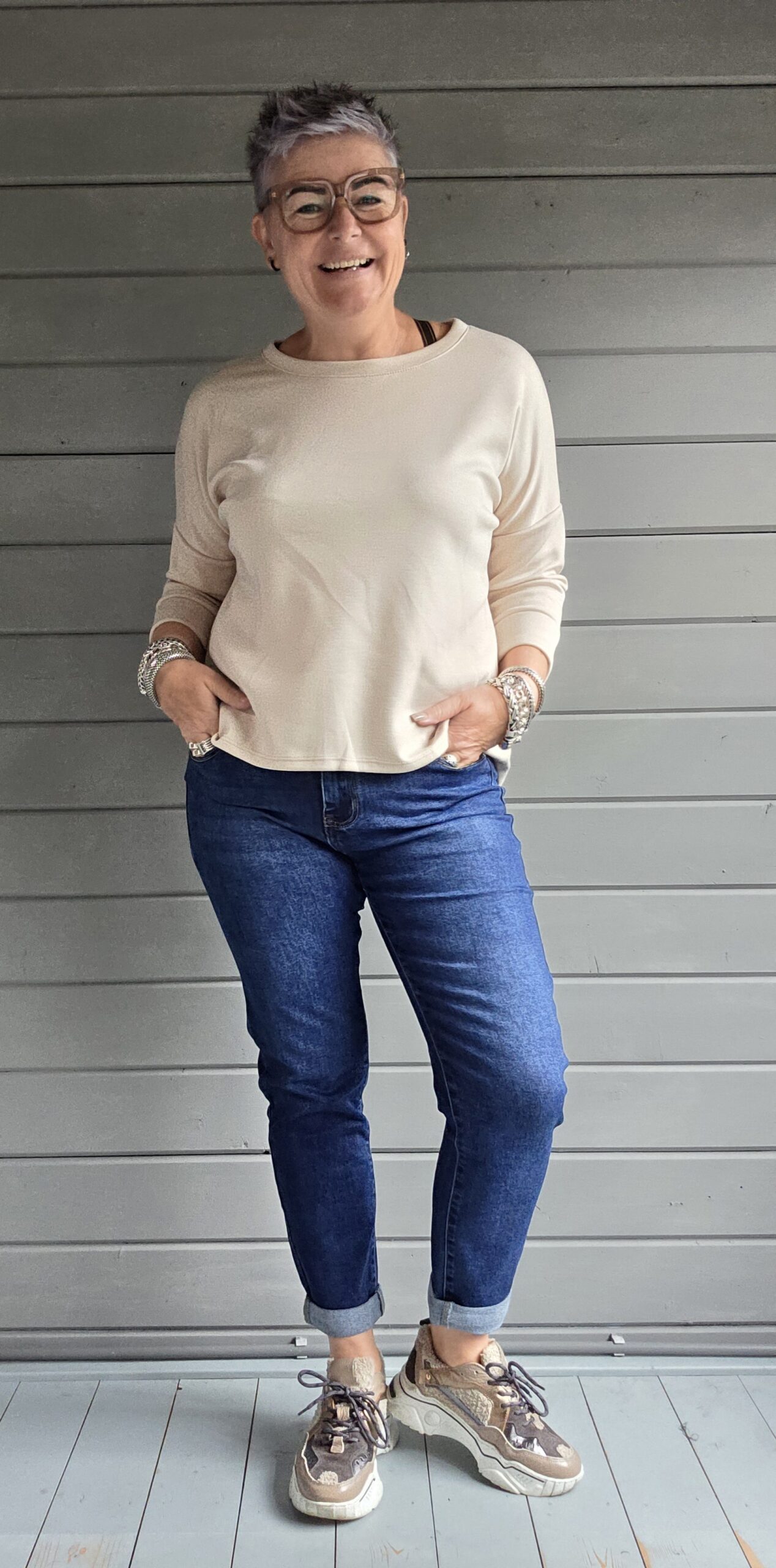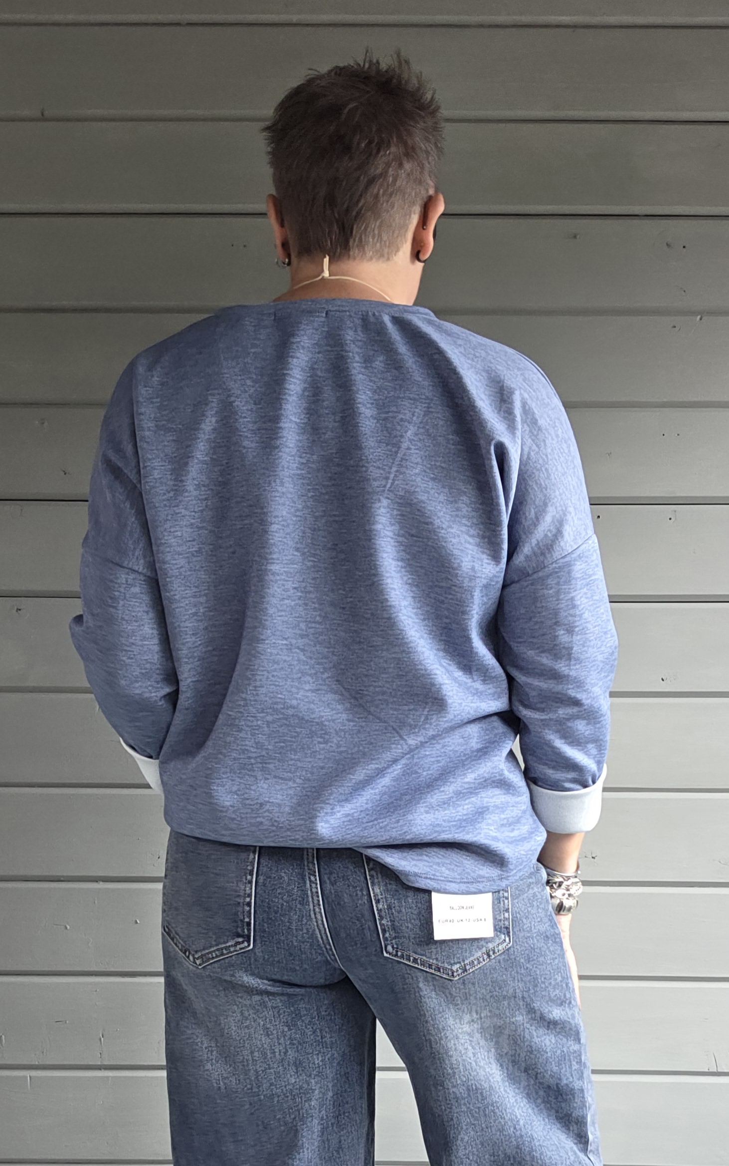 Lekkere nonchalante sweater, achter iets langer bij de bips