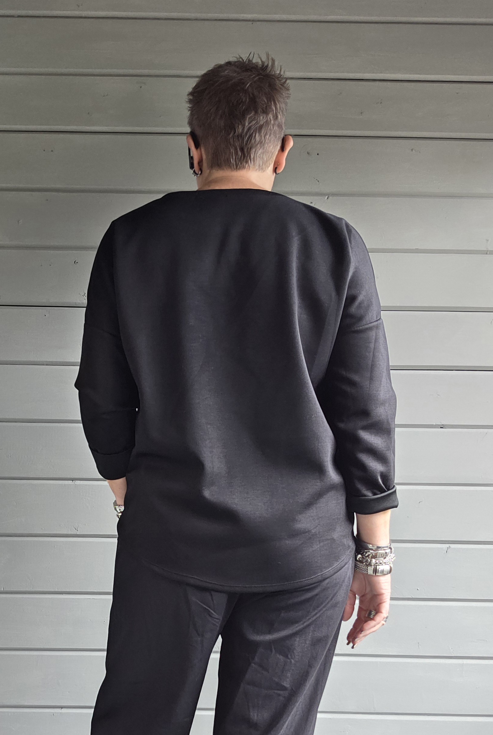 Lekkere nonchalante sweater, achter iets langer bij de bips