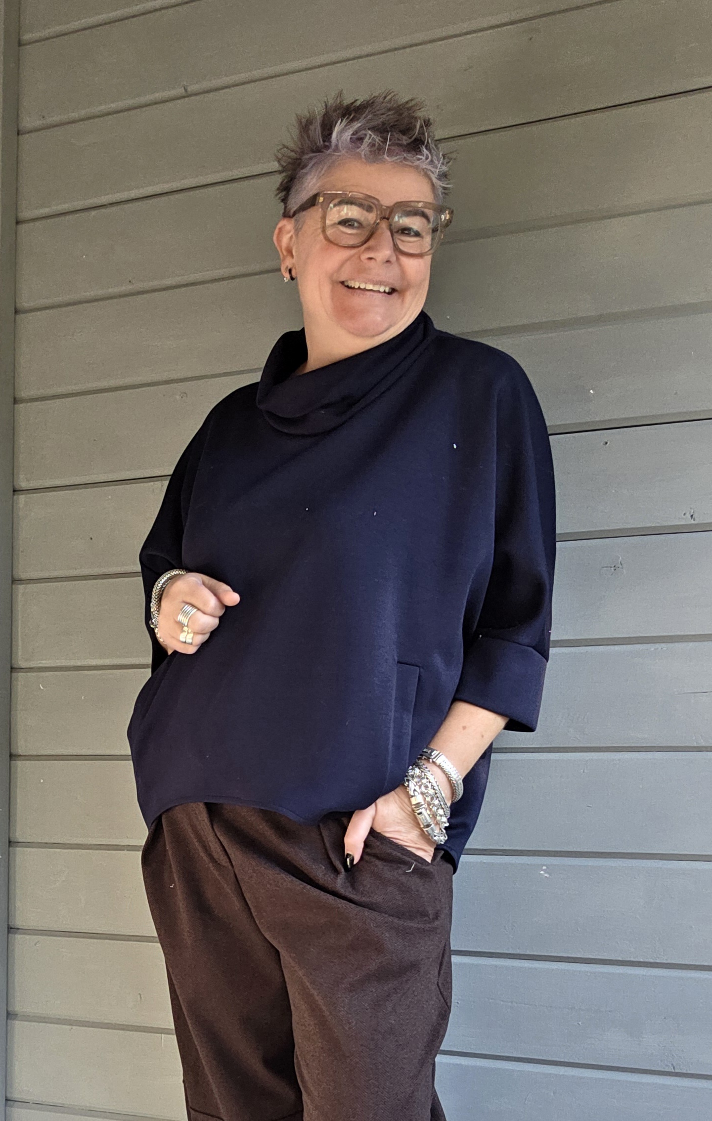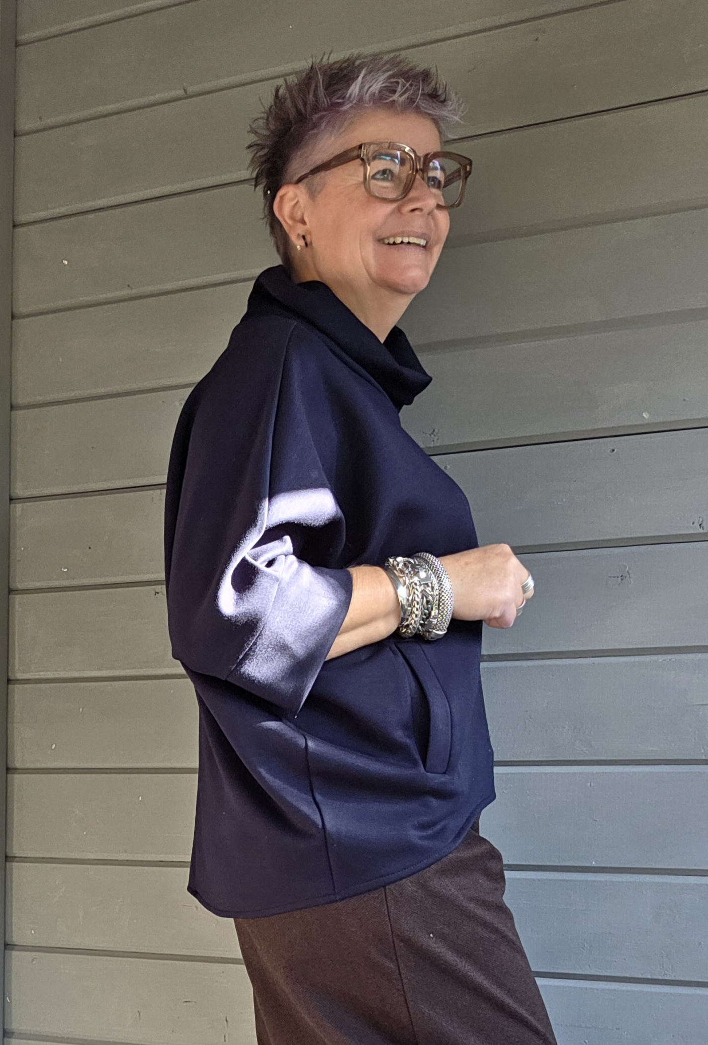 Zit ongelooflijk comfortabel, is nl sweaterstof, dus rekt mee aan alle kanten
