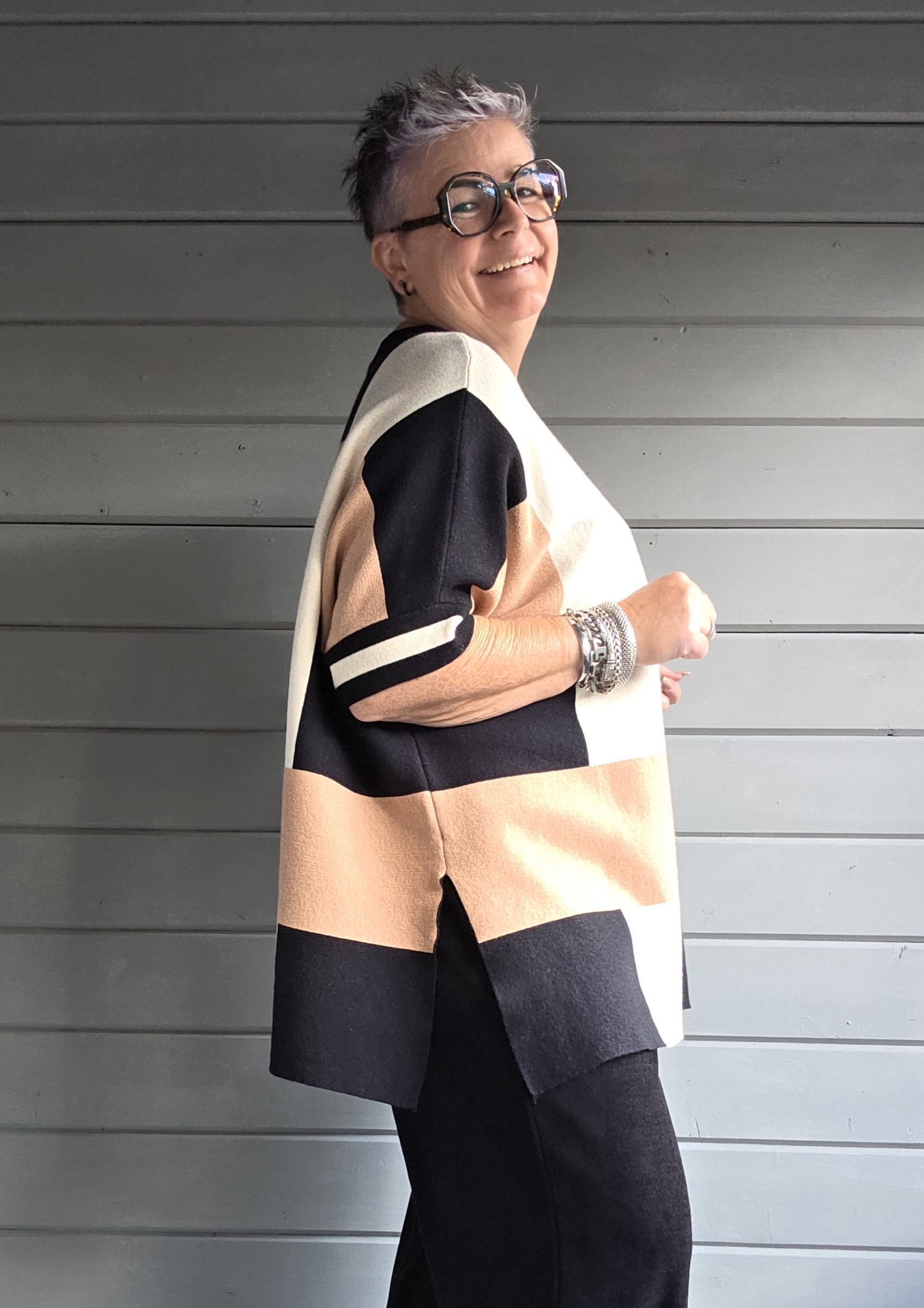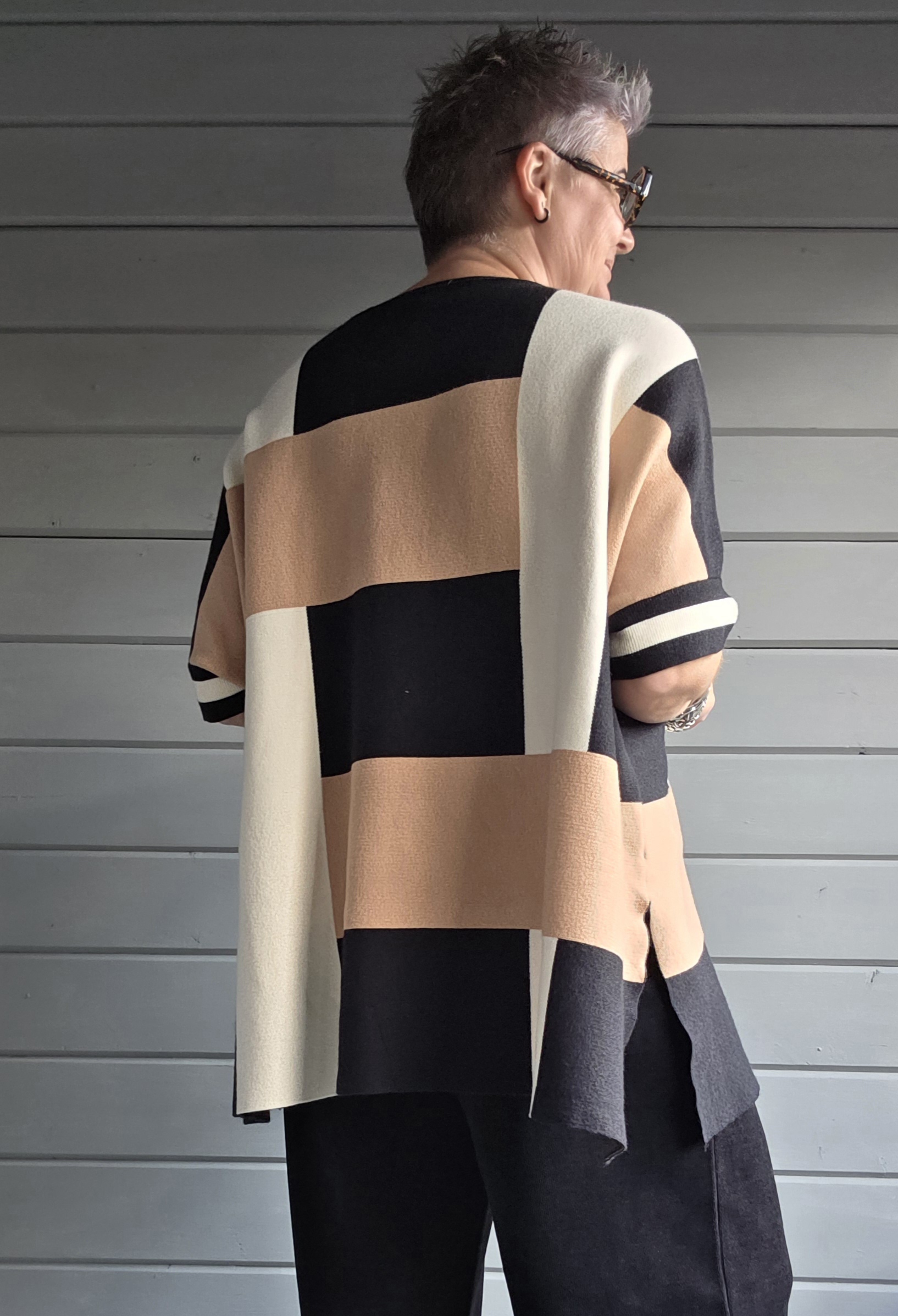 Leuke vlakverdeling, daarom met diverse onderkanten/kleuren te combineren