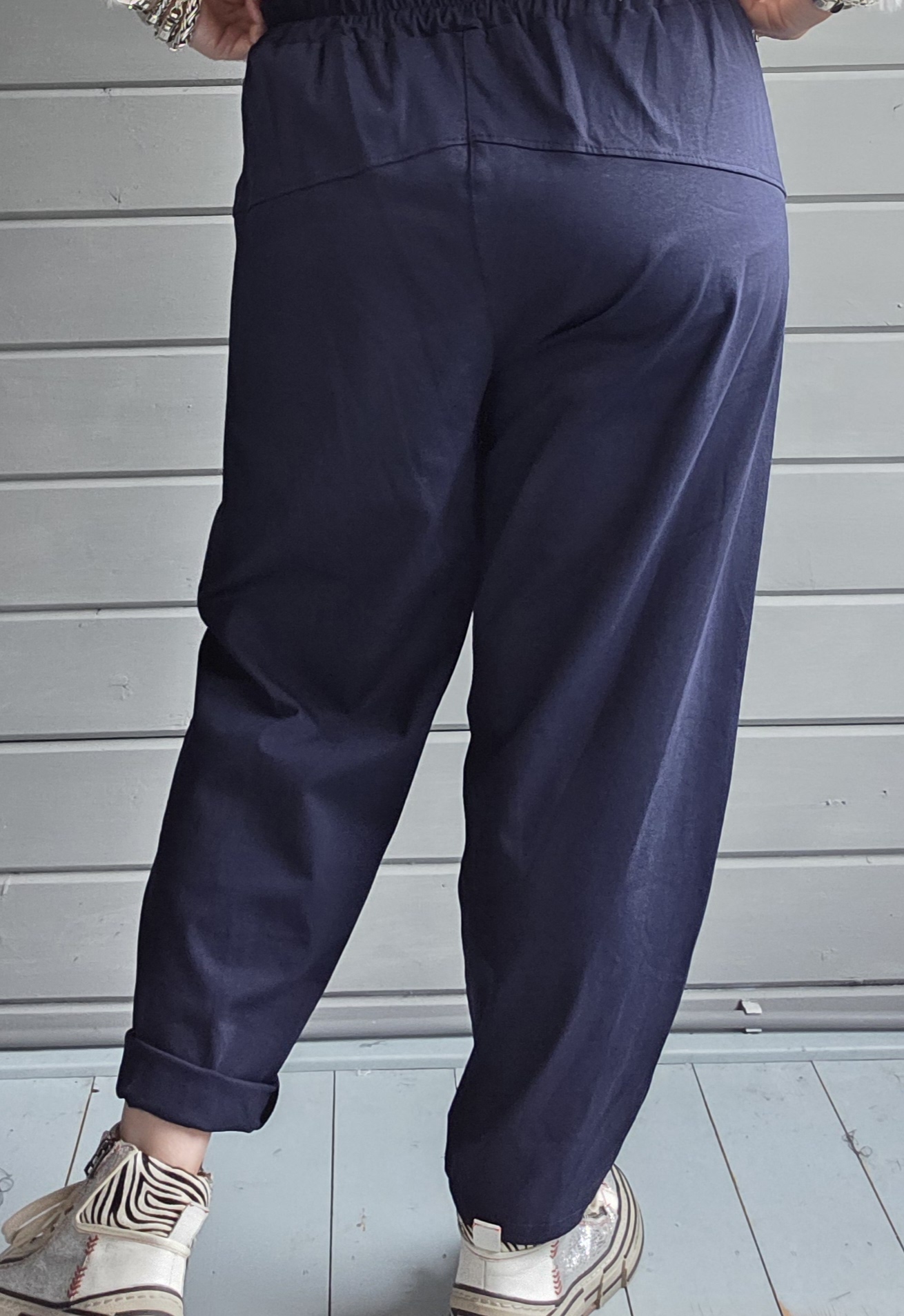 Nonchalant/oversized broekje bij 38-40, de een houd ervan de ander niet.