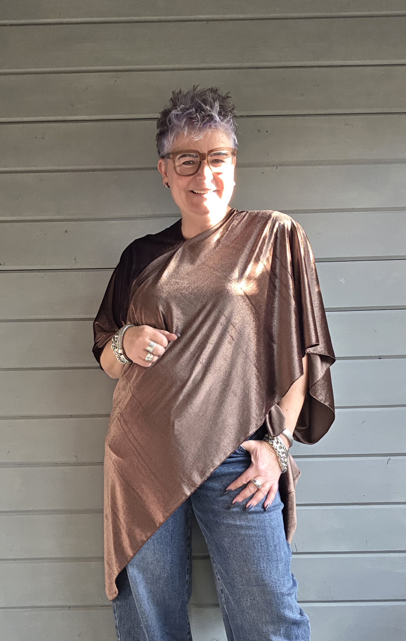 Het is een lap stof met een gat erin, velours, dat geeft een shiny effect.