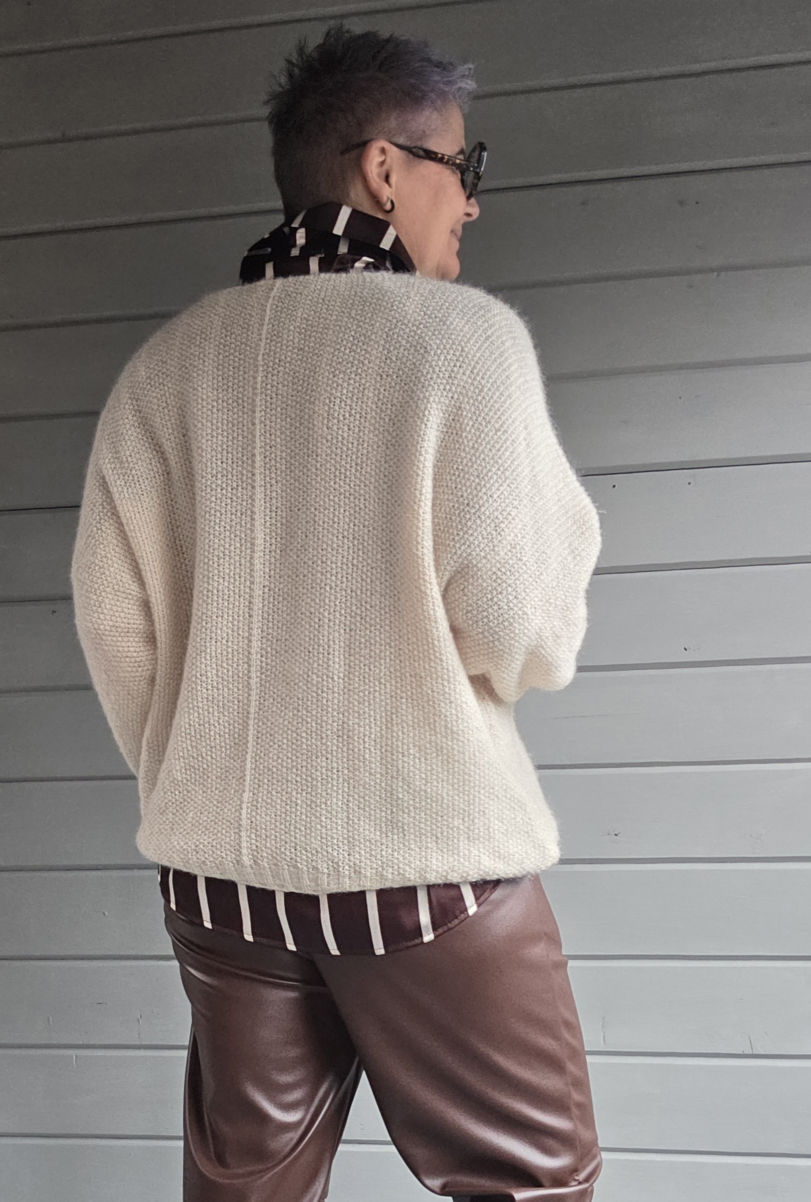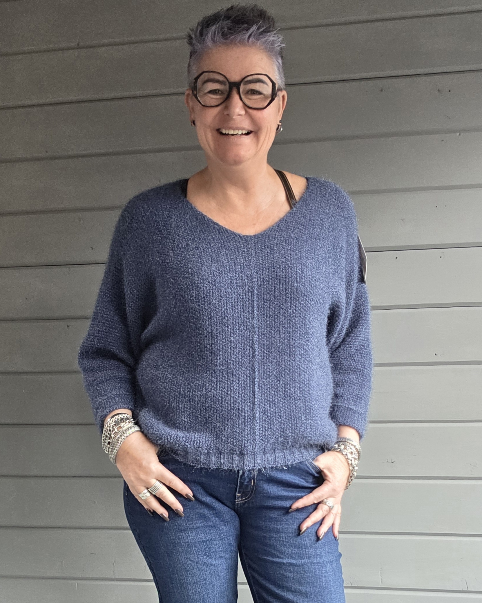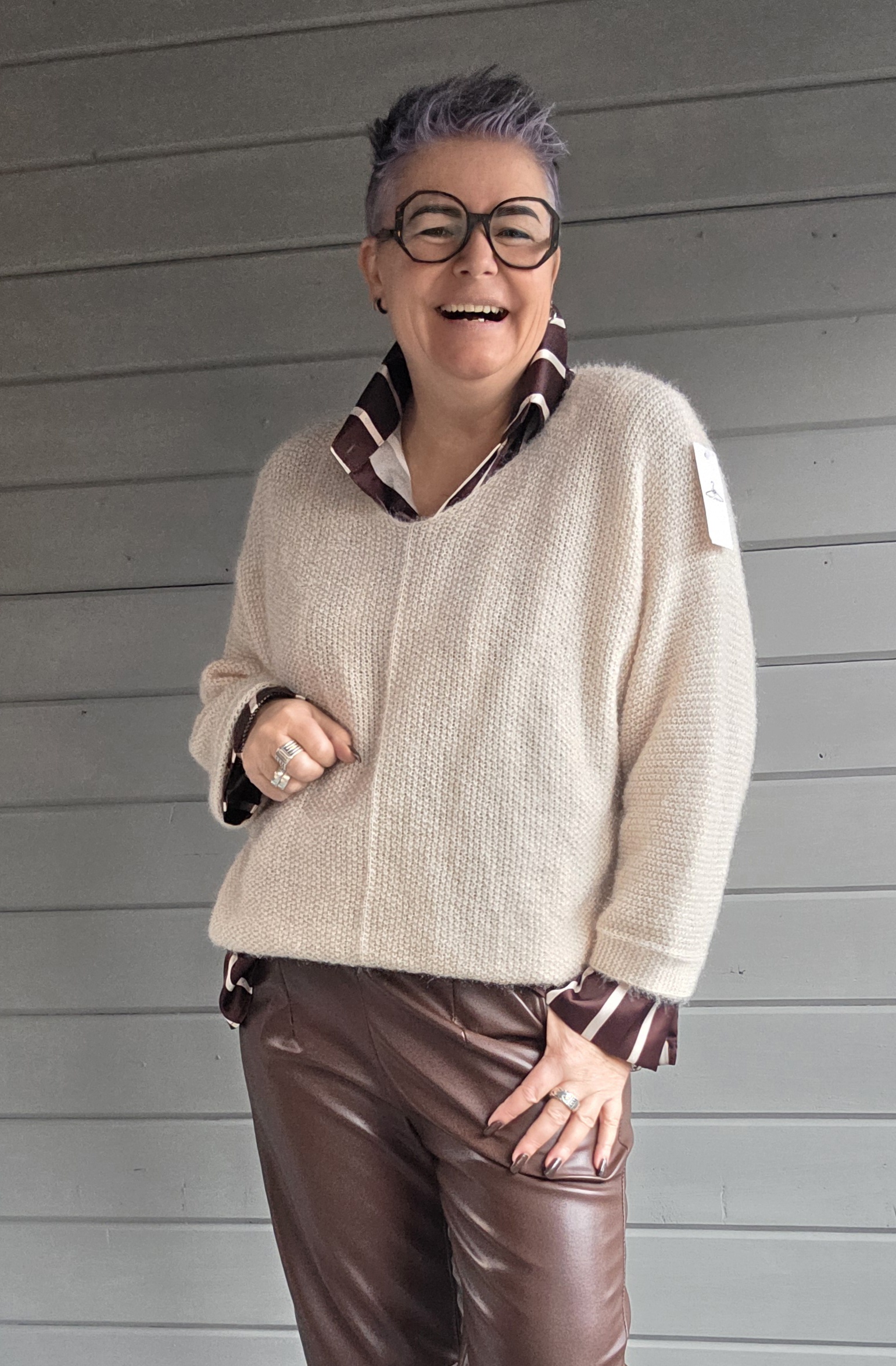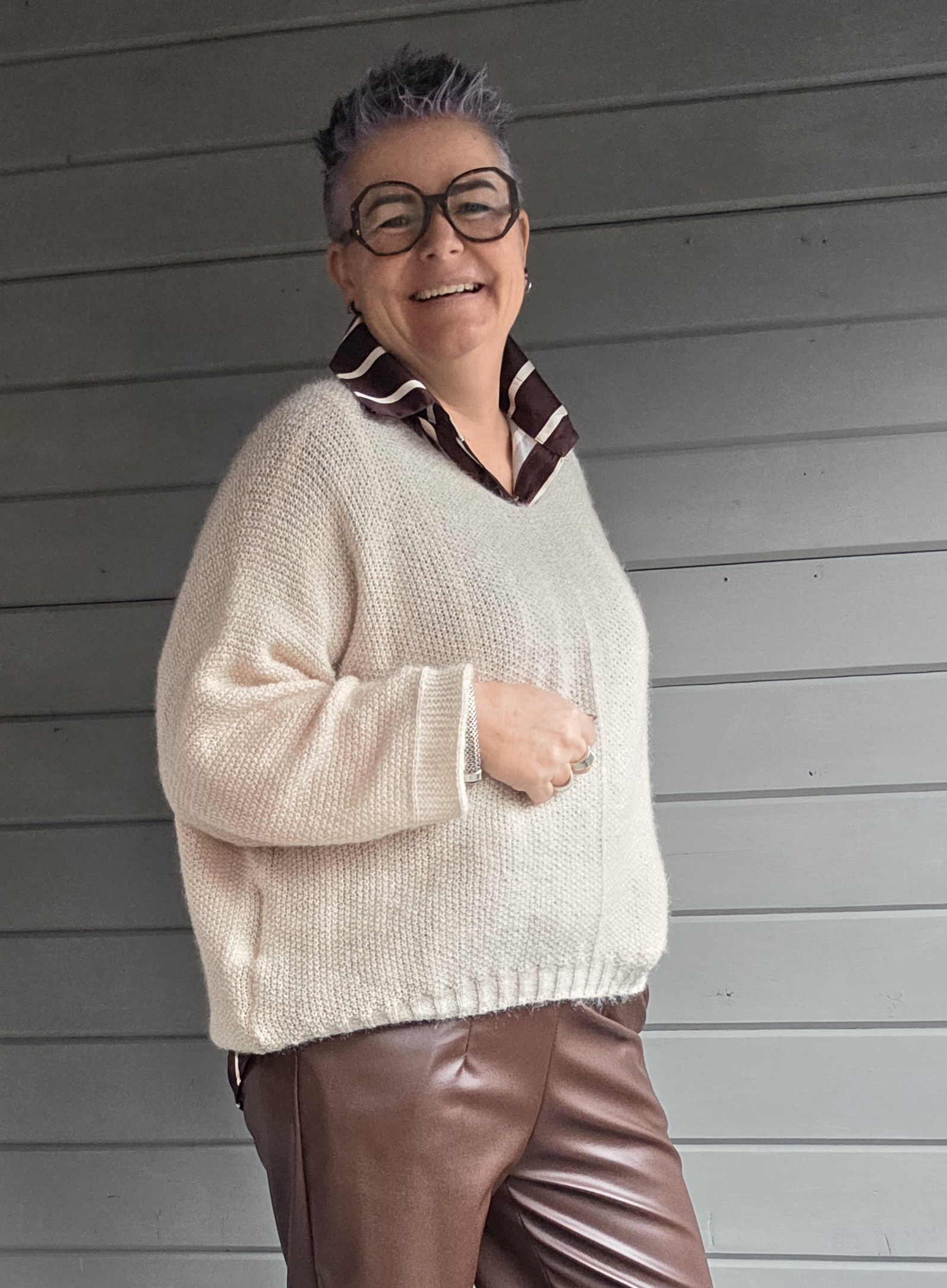 V-hals, waardoor je er ook een leuke blouse onder kunt dragen.
