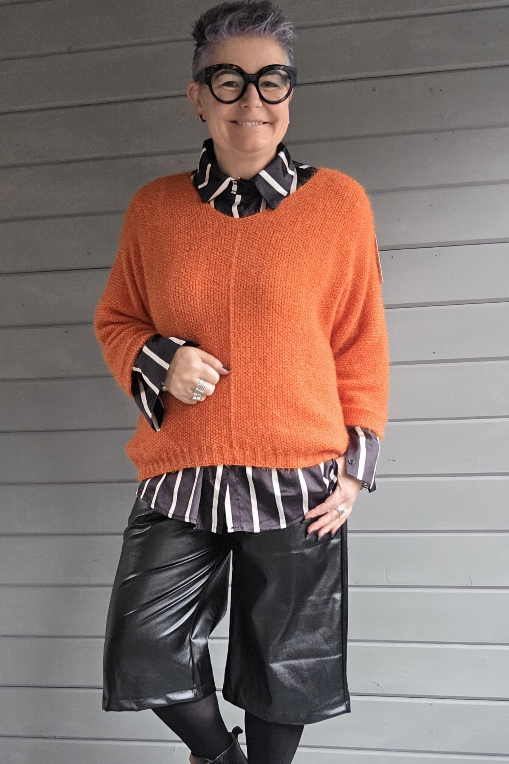 V-hals, waardoor je er ook een leuke blouse onder kunt dragen.