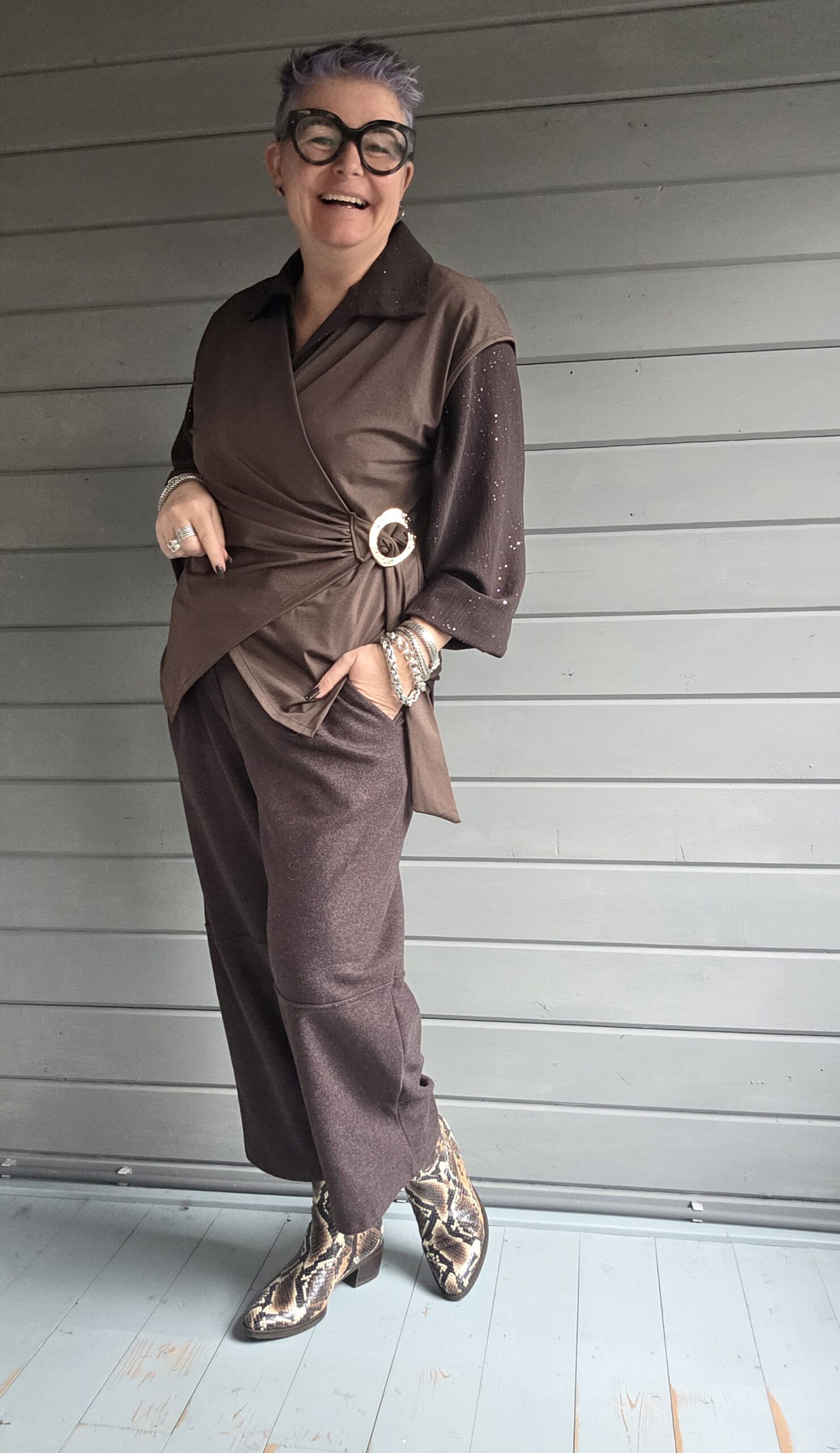 Elst shirt/overslag/travelkwaliteit/d.bruin
