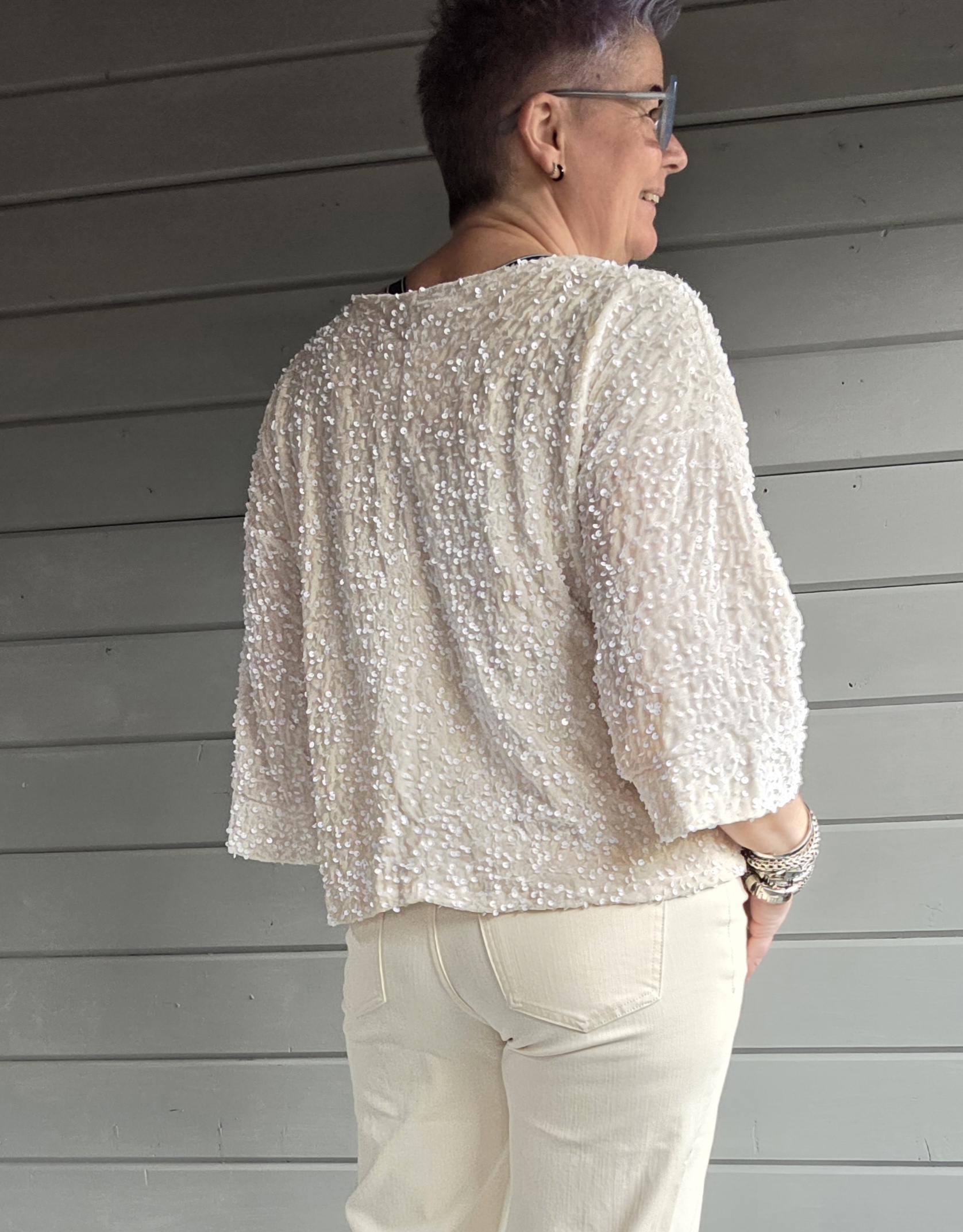 Als je huid gevoelig is, draag er dan een shirt/kolletje met lange mouw onder om pikken tegen te gaan.