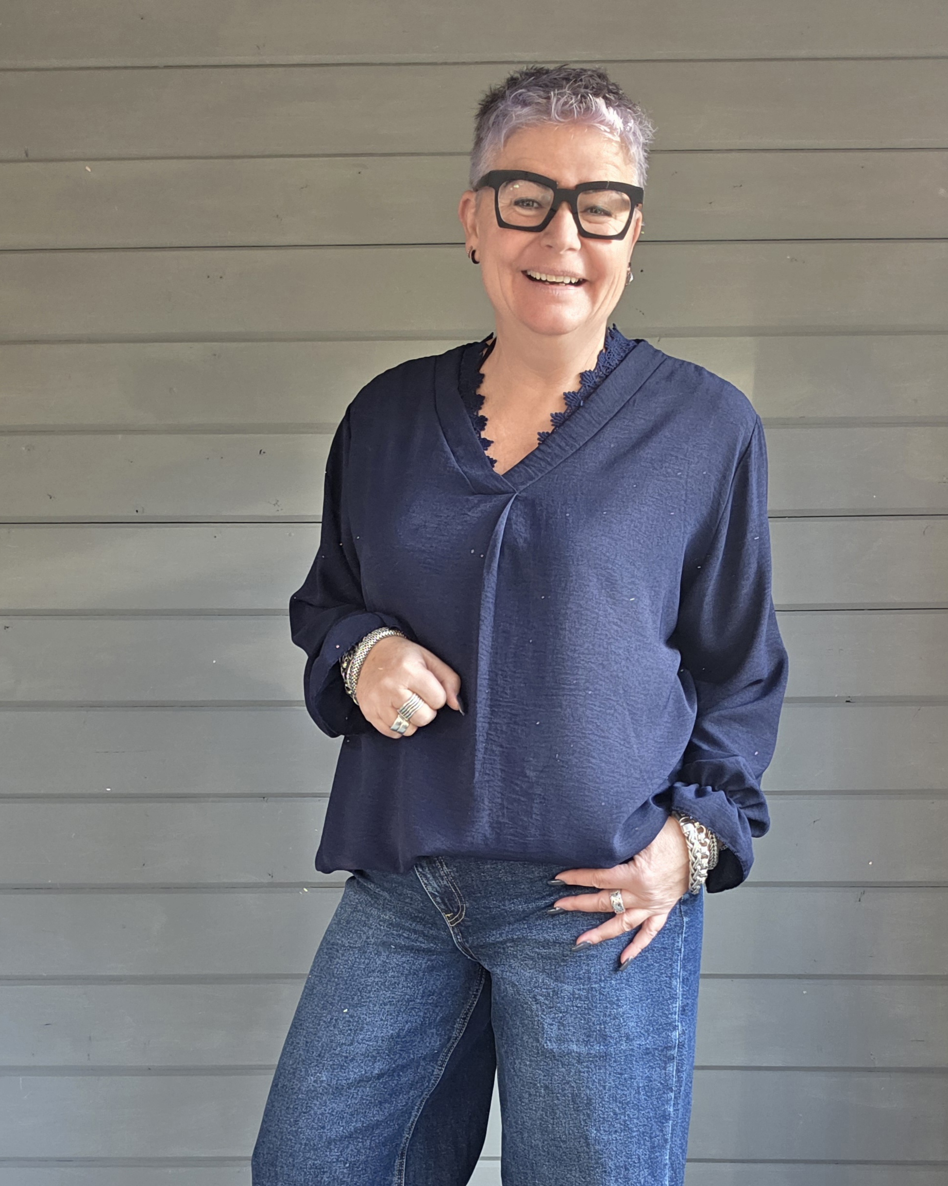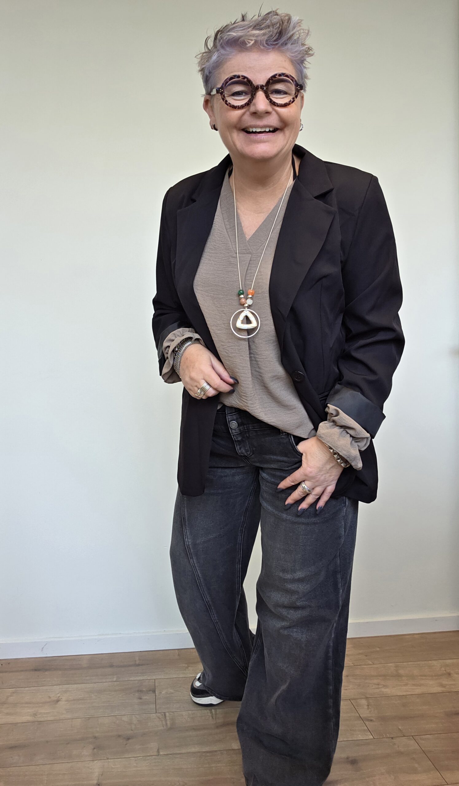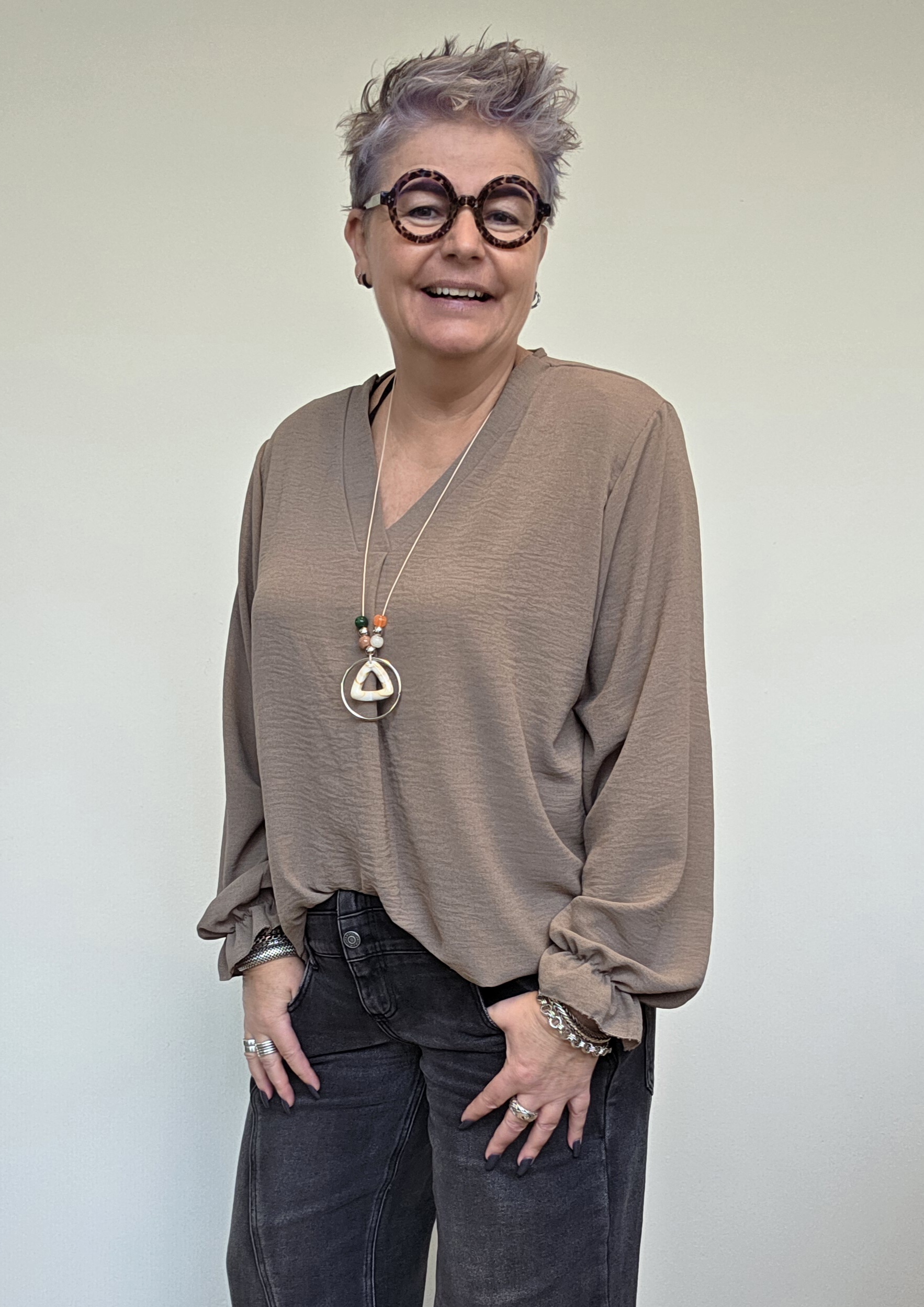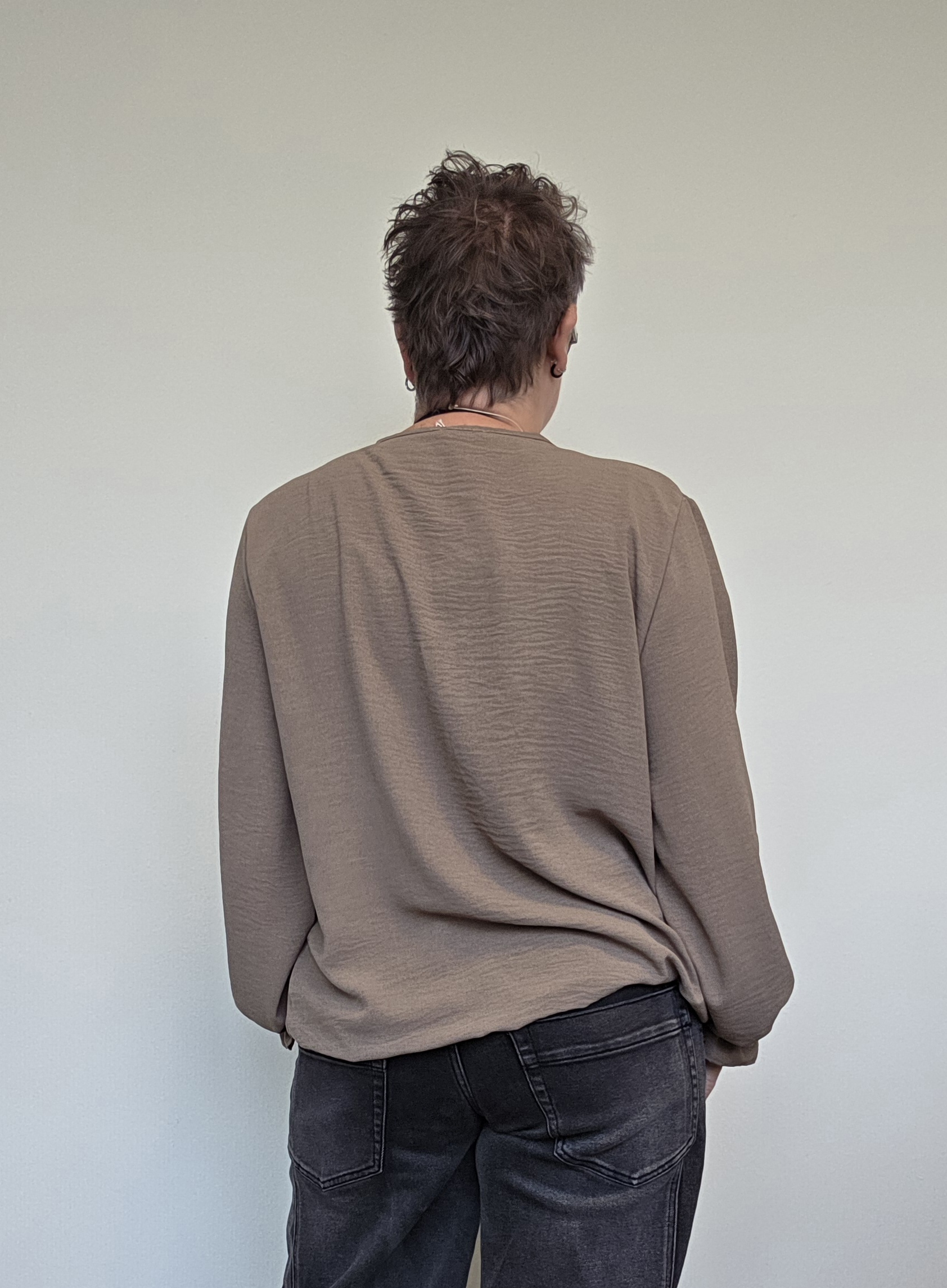 Mooie V-hals en elastiek onderaan voor het verbloem effect